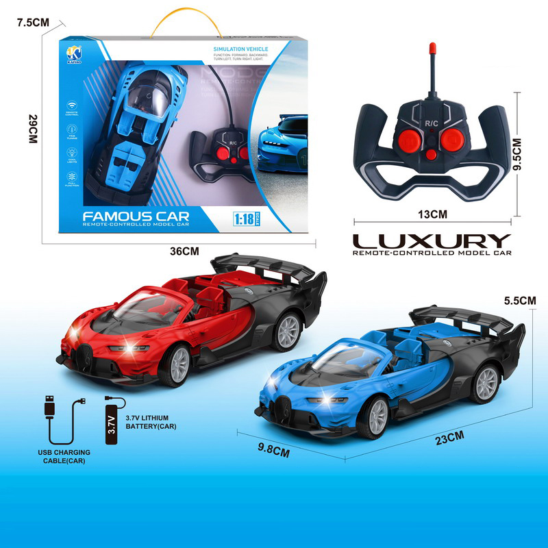 2.4G 1:18 R/C CAR W/LIGHT&MUSIC W/BATTERY&USB CHARGER(2 COLOR ASST.)