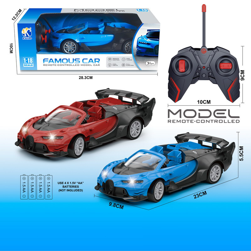 1:18 4 FUNCTION R/C CAR W/LIGHT W/O BATTERY(2 COLOR ASST.)