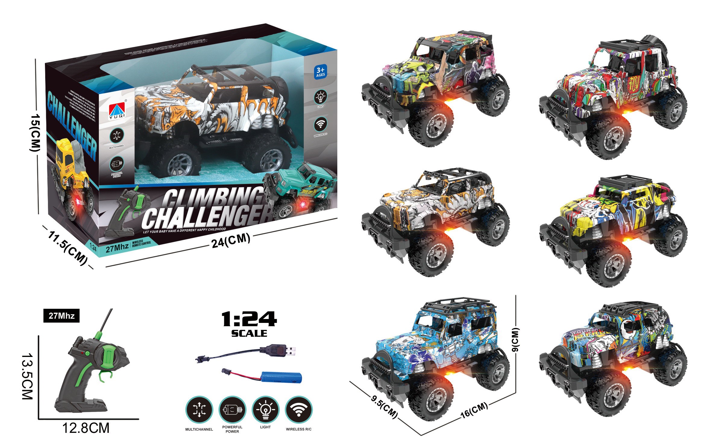 product_name: 1:24 4 FUNCTION R/C CAR W/ LIGHT W/BATTERY&USB CHARGER(4 ASST.)