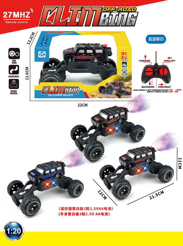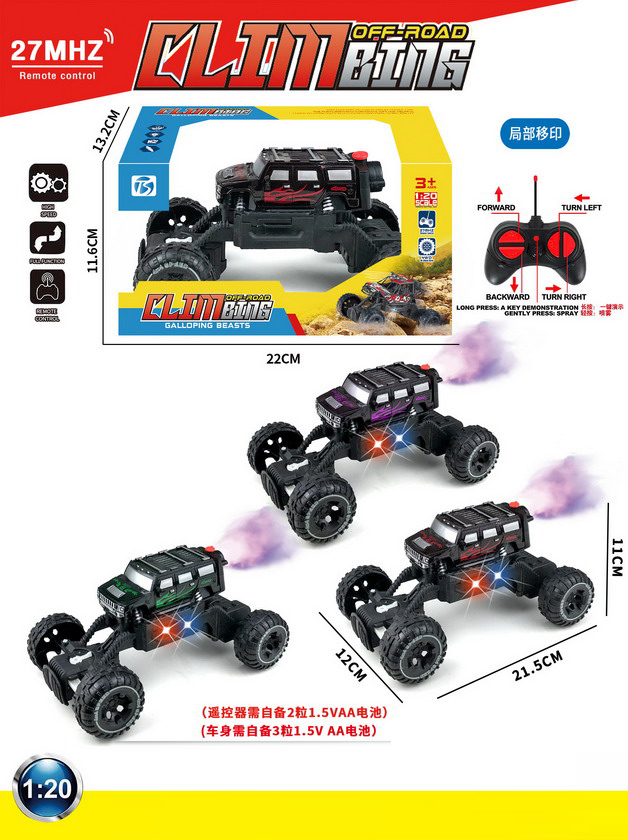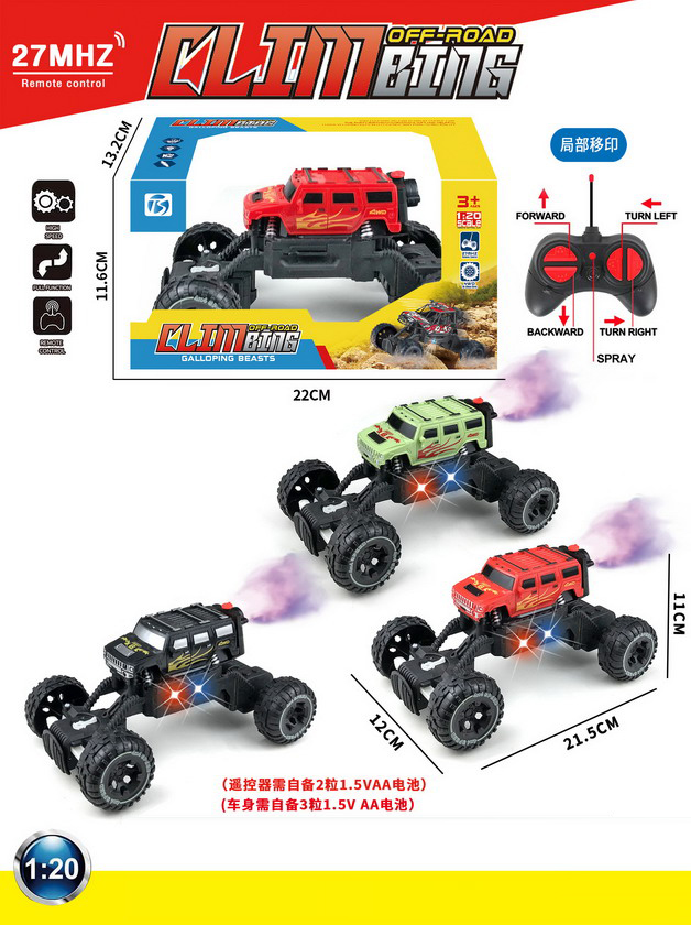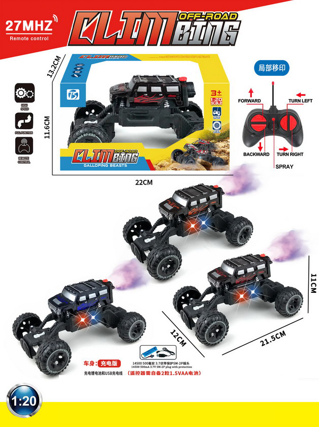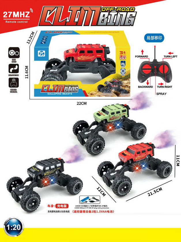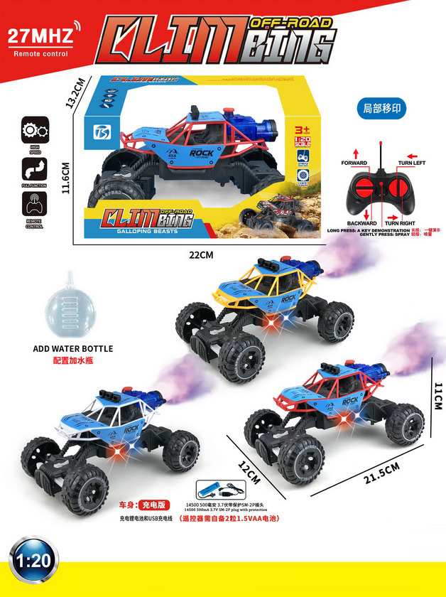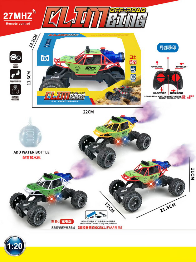 5 FUNCTION R/C CAR W/LIGHT&SPRAY W/BATTERY&USB CHARGER(3 COLOUR ASST.)