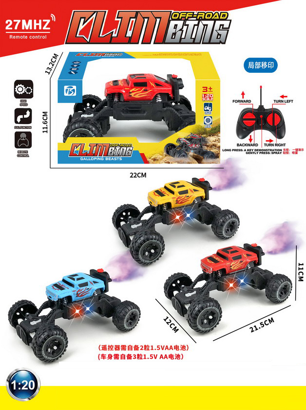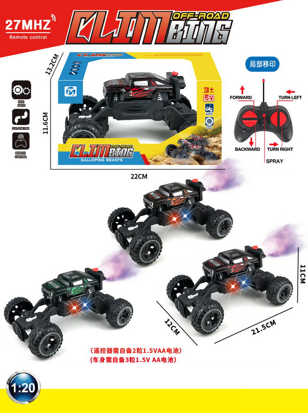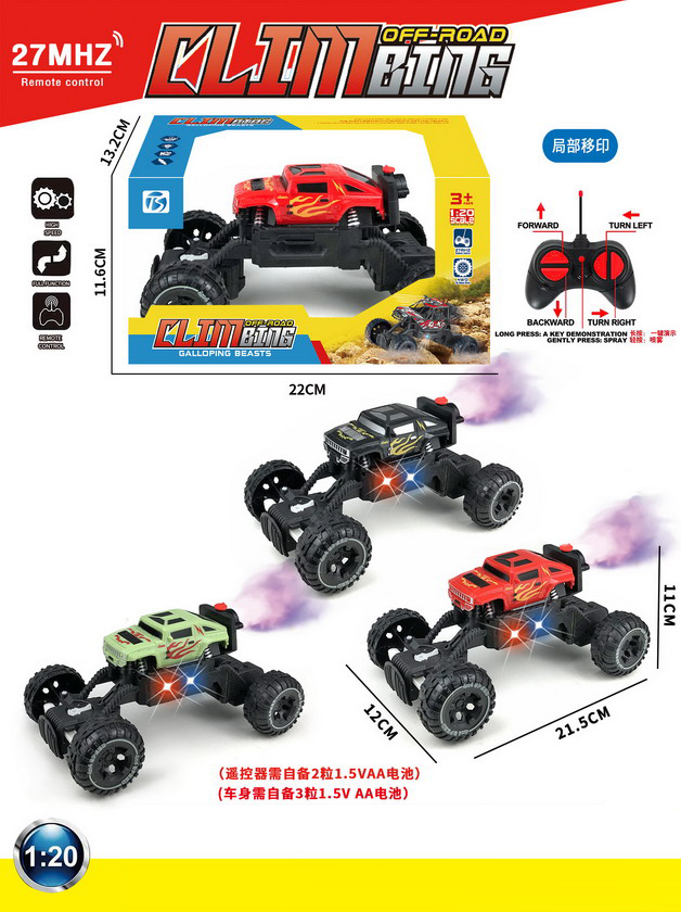 product_name: 5 FUNCTION R/C CAR W/LIGHT&SPRAY W/O BATTERY(3 COLOUR ASST.)