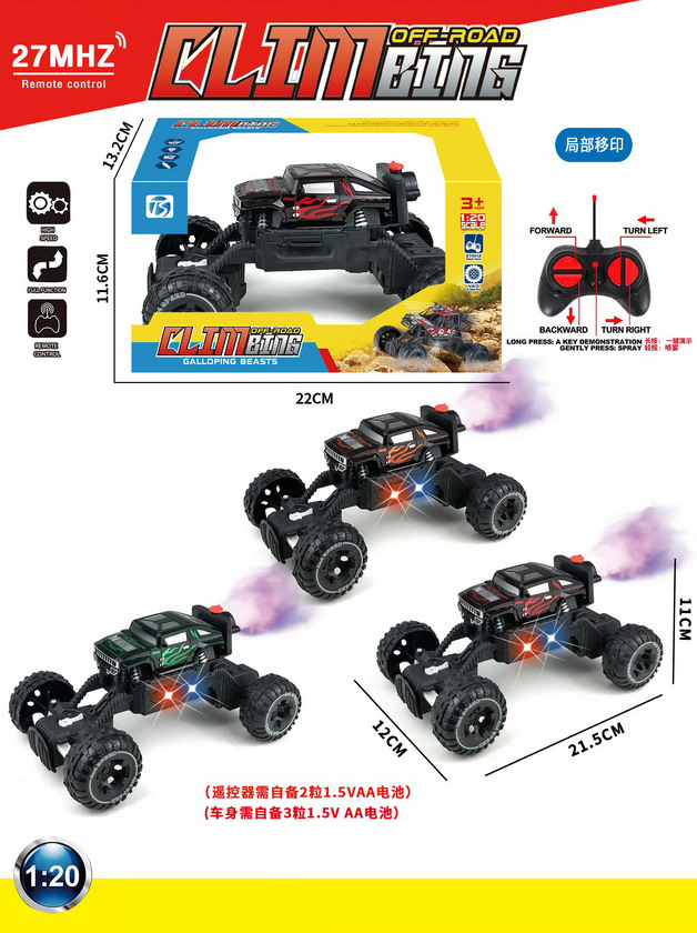 product_name: 6 FUNCTION R/C CAR W/LIGHT&SPRAY W/O BATTERY(3 COLOUR ASST.)