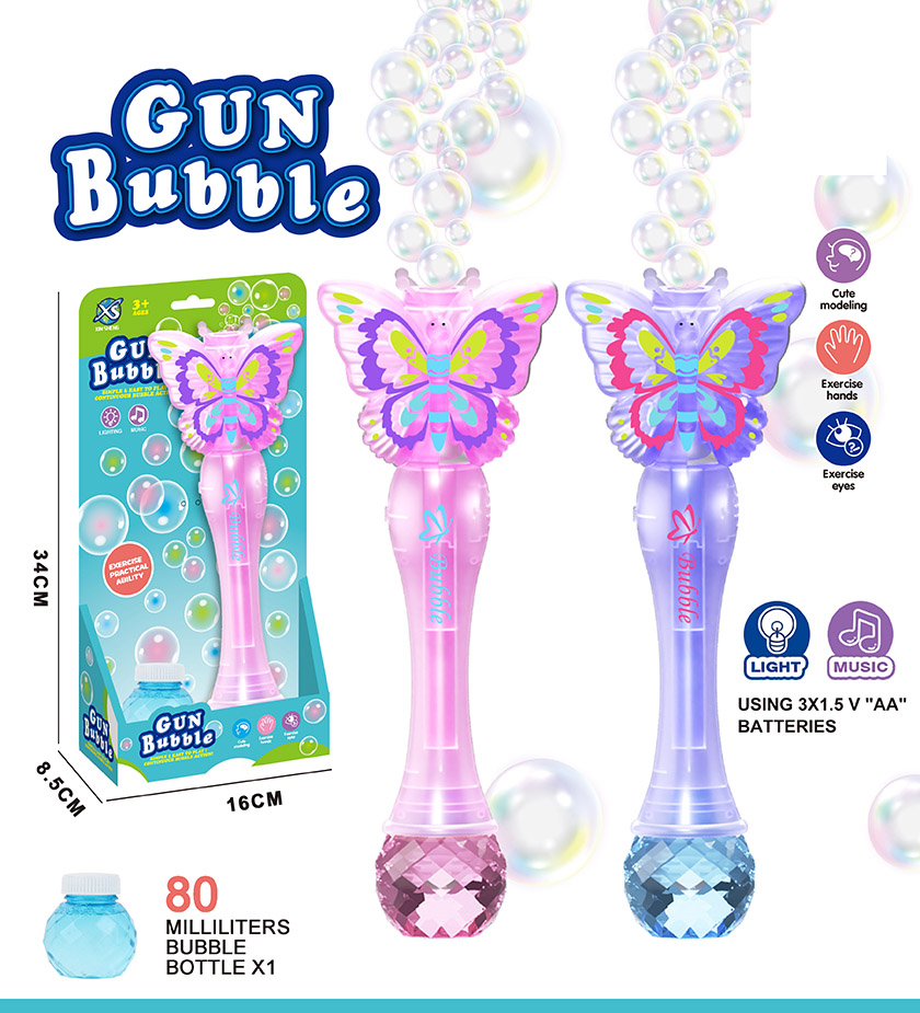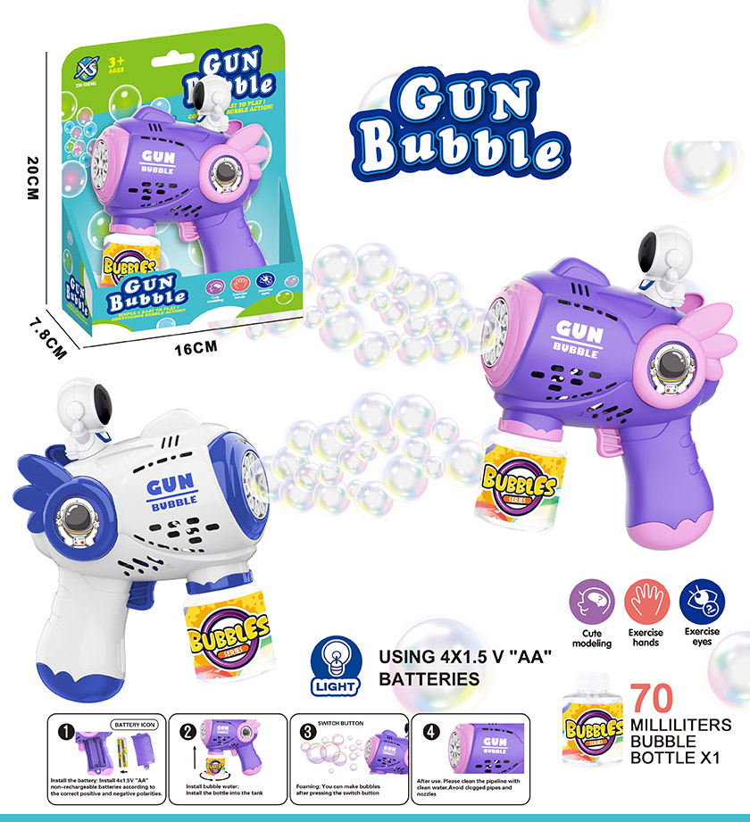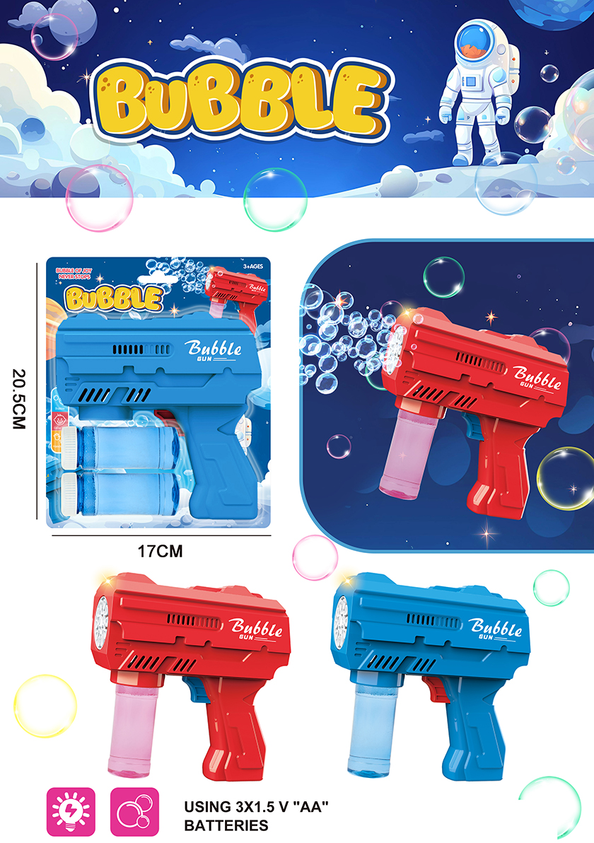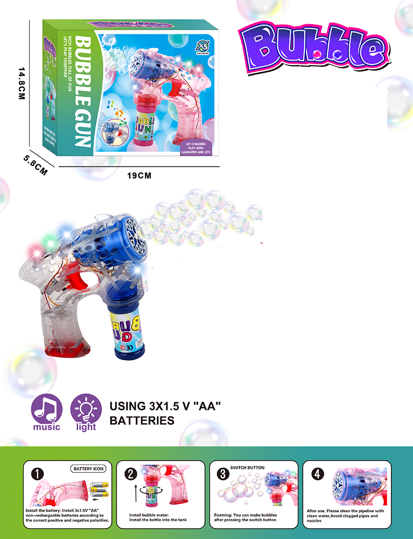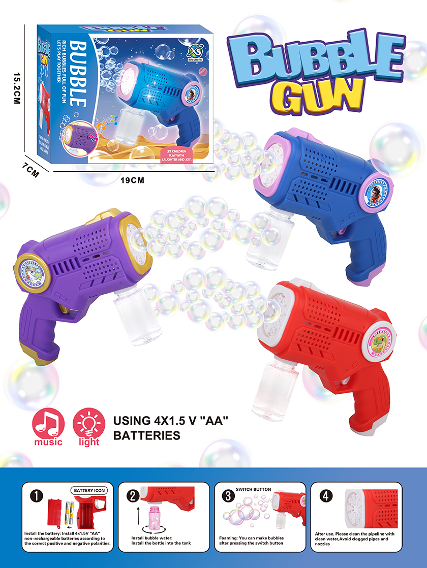 B/O BUBBLE GUN W/LIGHT&MUSIC W/O BATTERY(4 COLOUR ASST.)