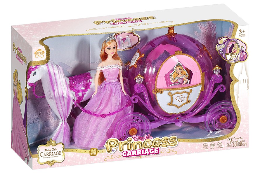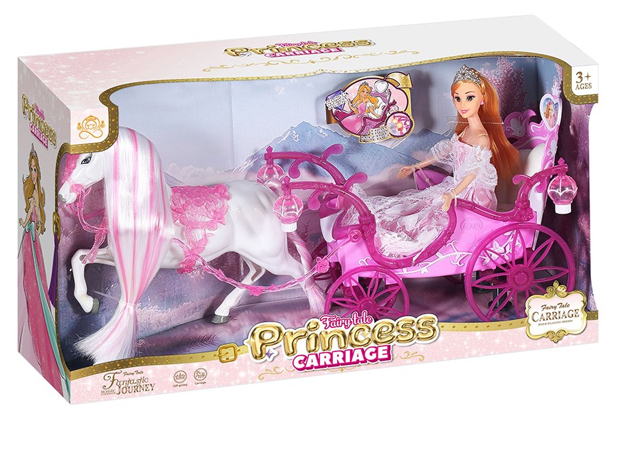 HORSE+CARRIAGE SET+29CM SOLID BODY BARBIE DOLL W/LIGHT W/BUTTON BATTERY