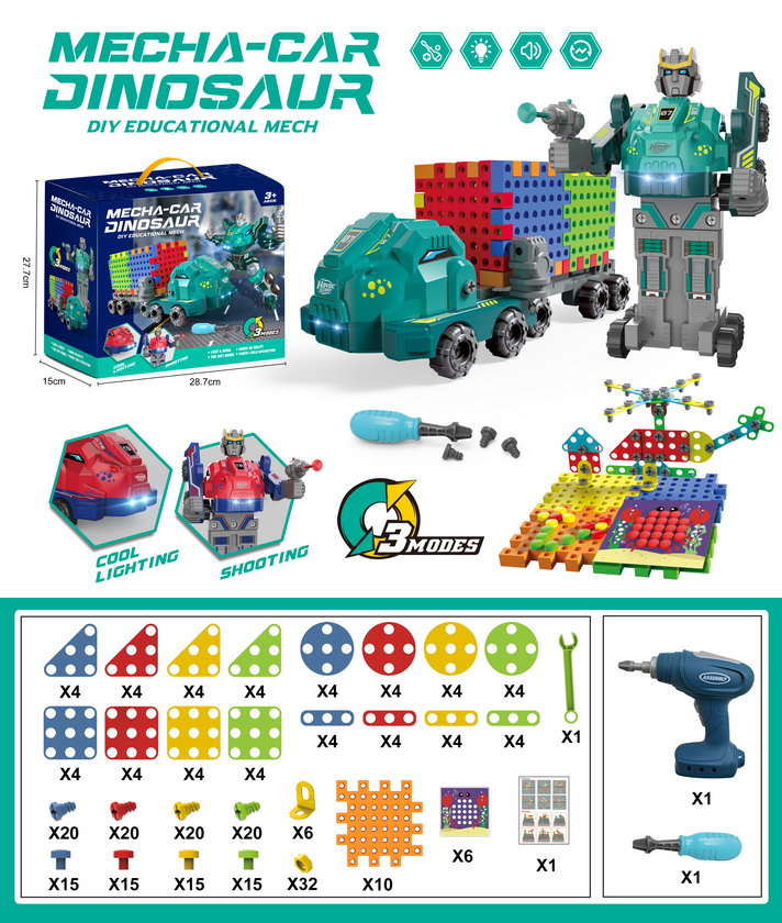 SELF-ASSEMBLING DINOSAUR W/LIGHT&MUSIC W/BUTTON BATTERY