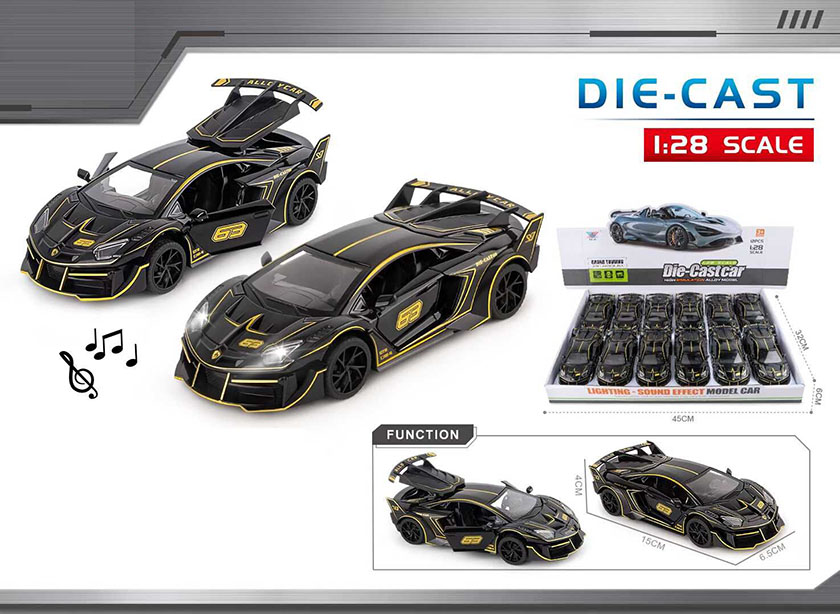 1:28 DIE-CAST PULL BACK CAR W/LIGHT&MUSIC W/BUTTON BATTERY(12PCS)