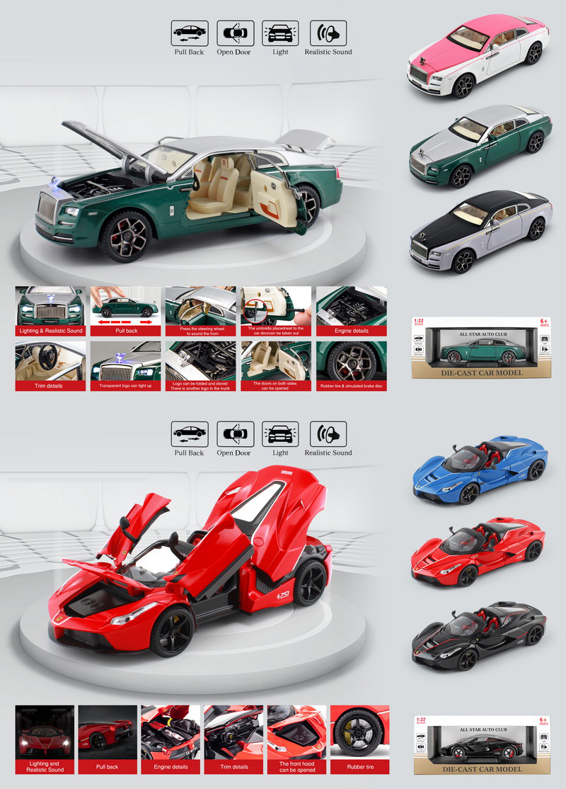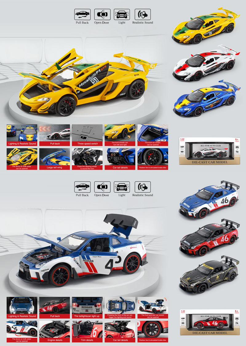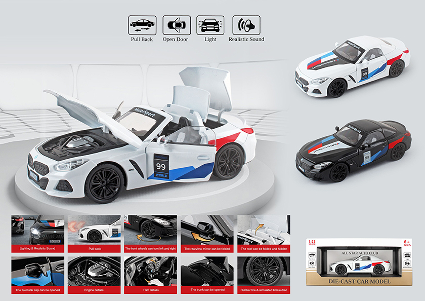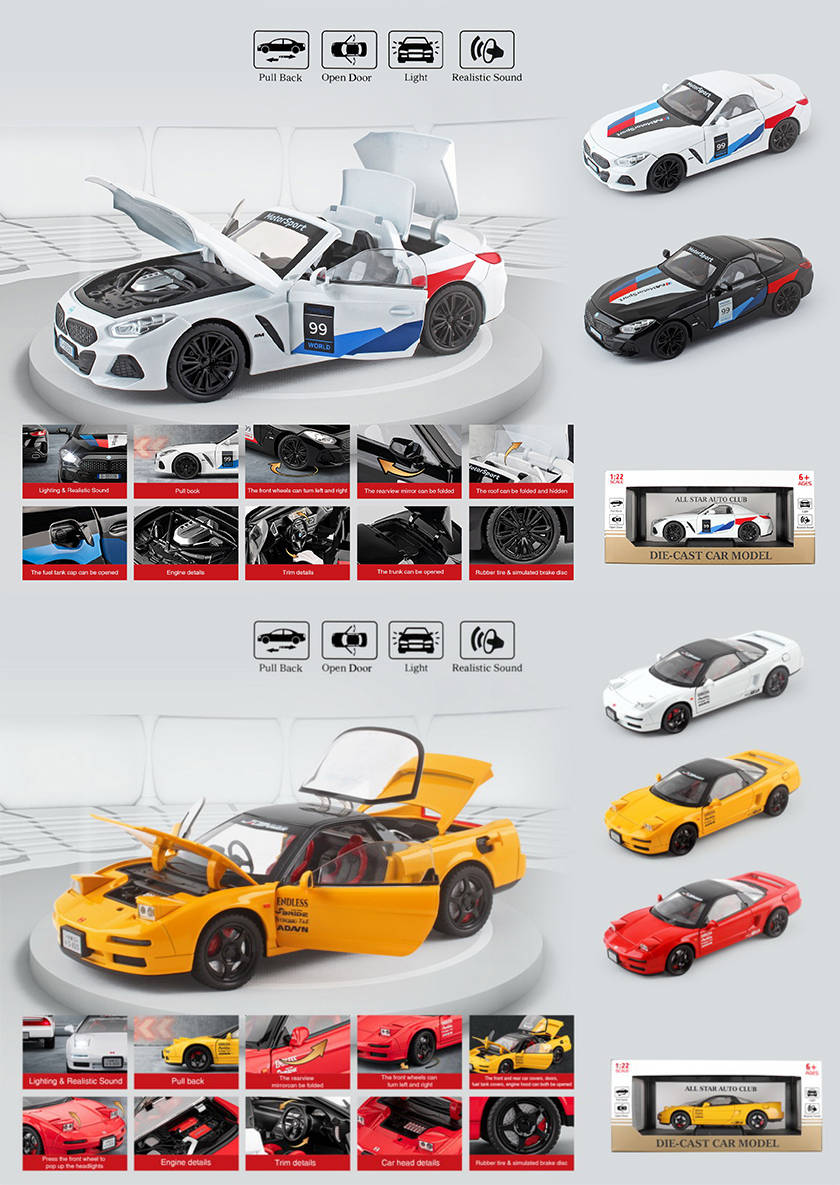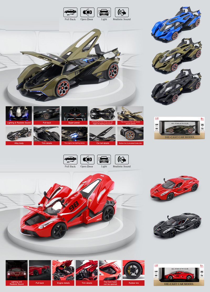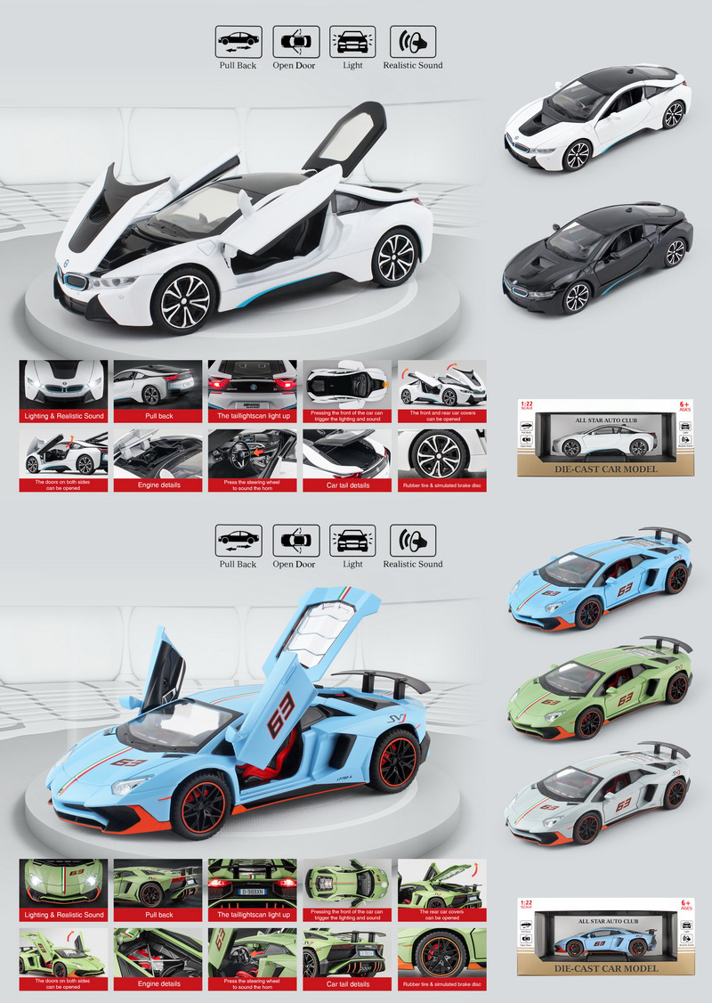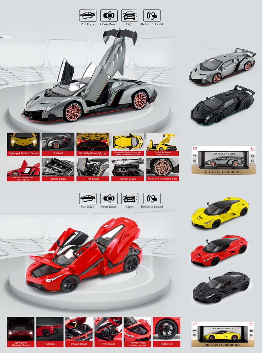 1:22 DIE-CAST PULL BACK CAR W/LIGHT&SOUND W/BUTTON BATTERY