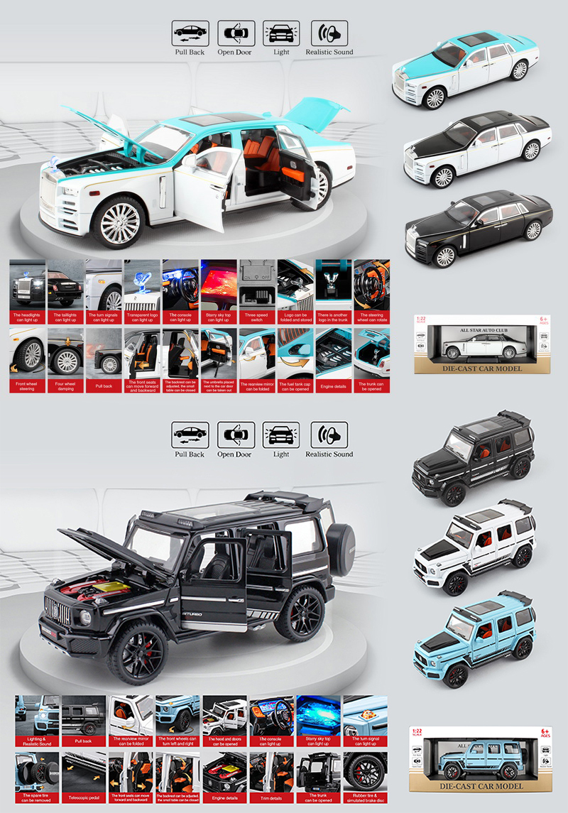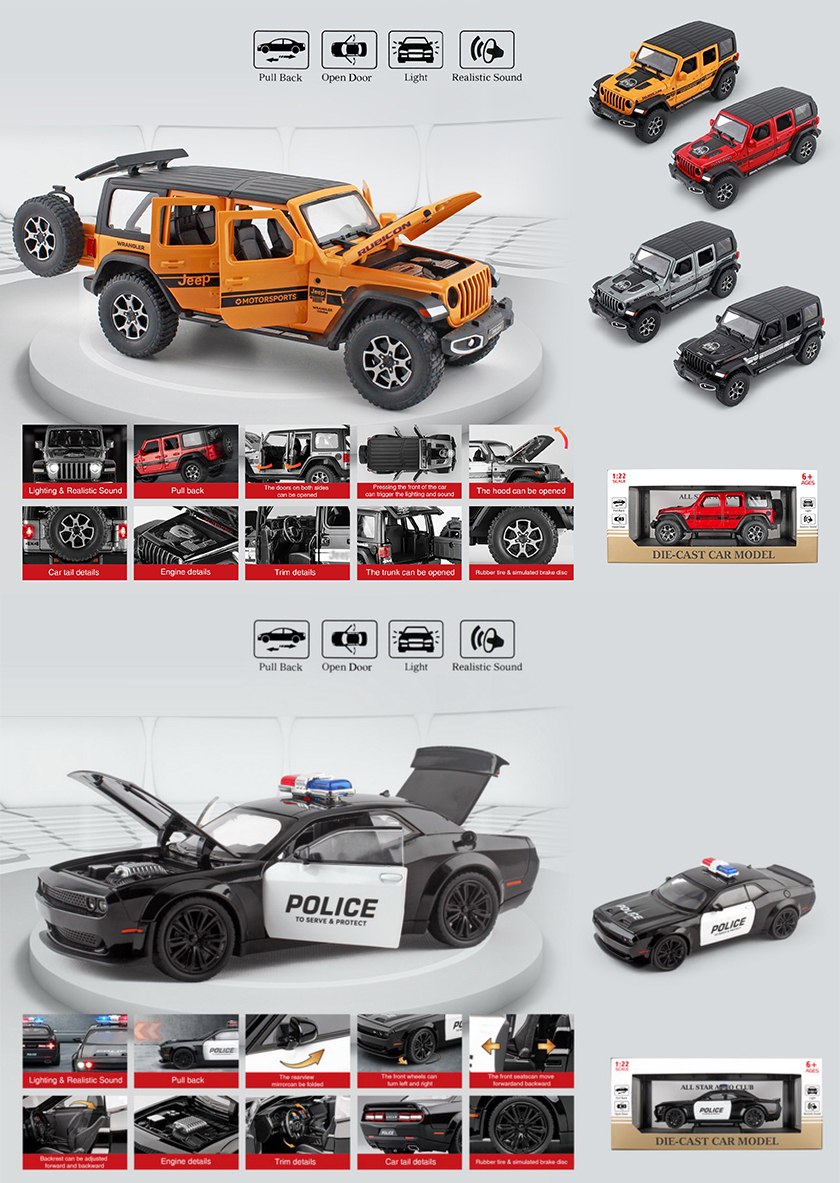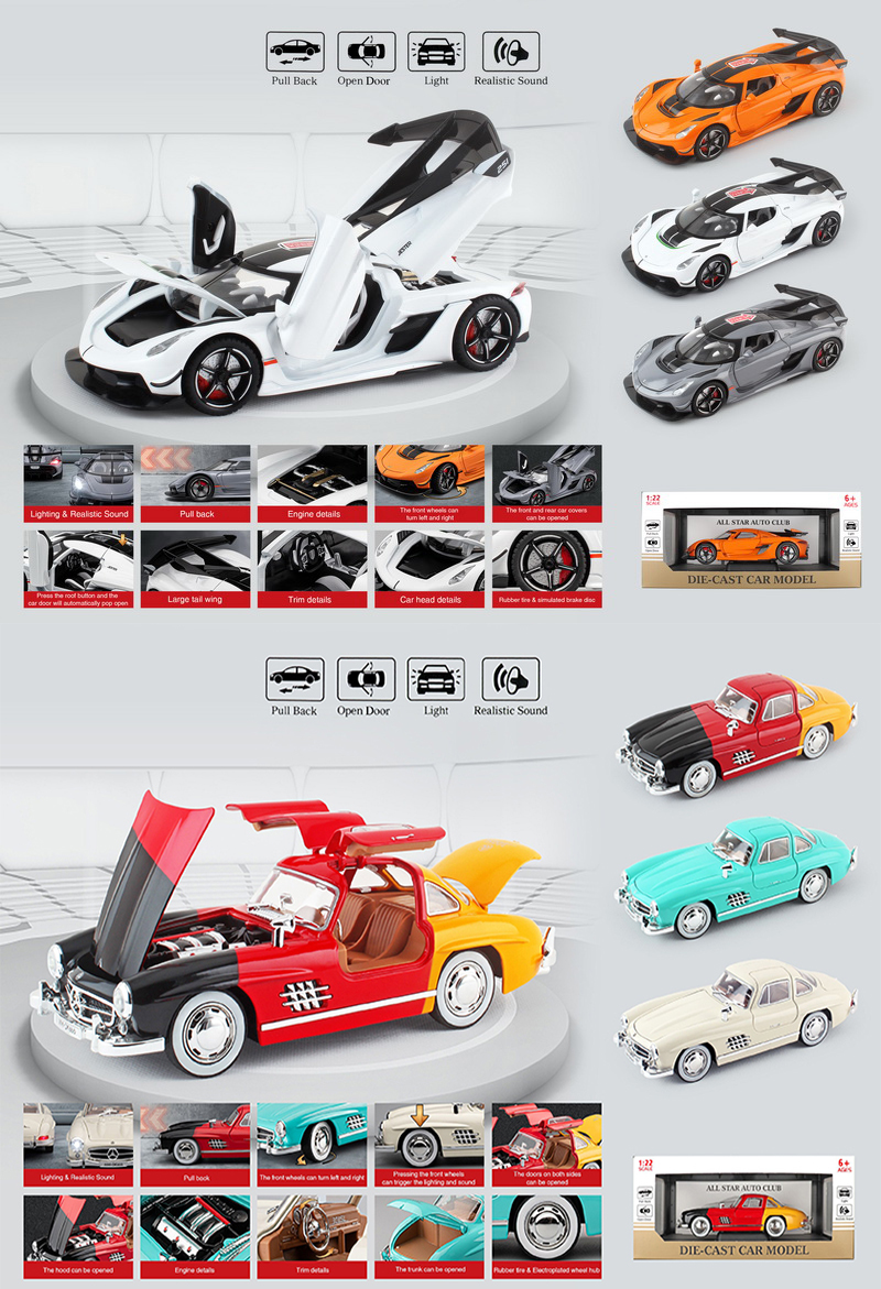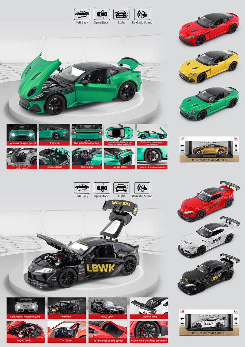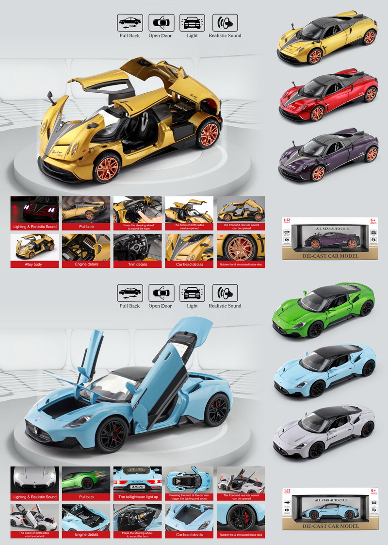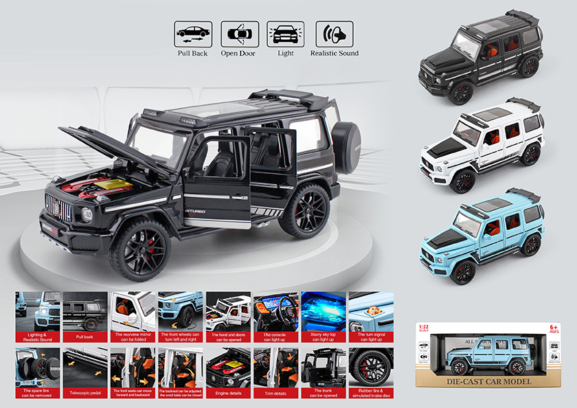 1:22 DIE-CAST PULL BACK CAR W/LIGHT&SOUND W/BUTTON BATTERY
