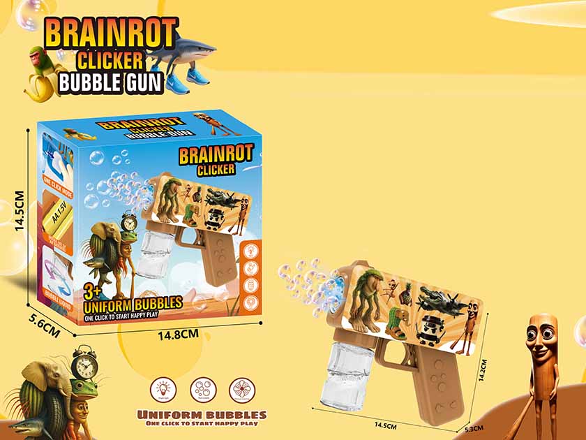 B/O BUBBLE GUN W/LIGHT W/O BATTERY(ITALIAN BRAINROT/BROWN)