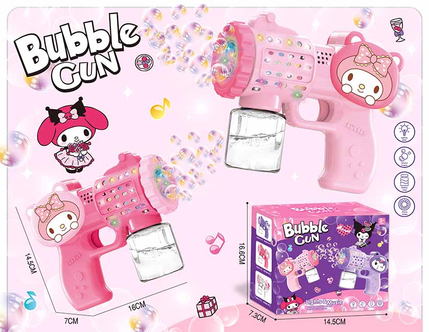 B/O BUBBLE GUN W/LIGHT&MUSIC W/O BATTERY(2 COLOUR ASST./SANRIO)