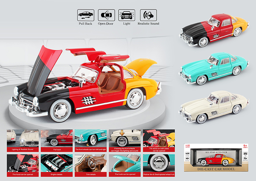 1:22 DIE-CAST PULL BACK CAR W/LIGHT&SOUND W/BUTTON BATTERY