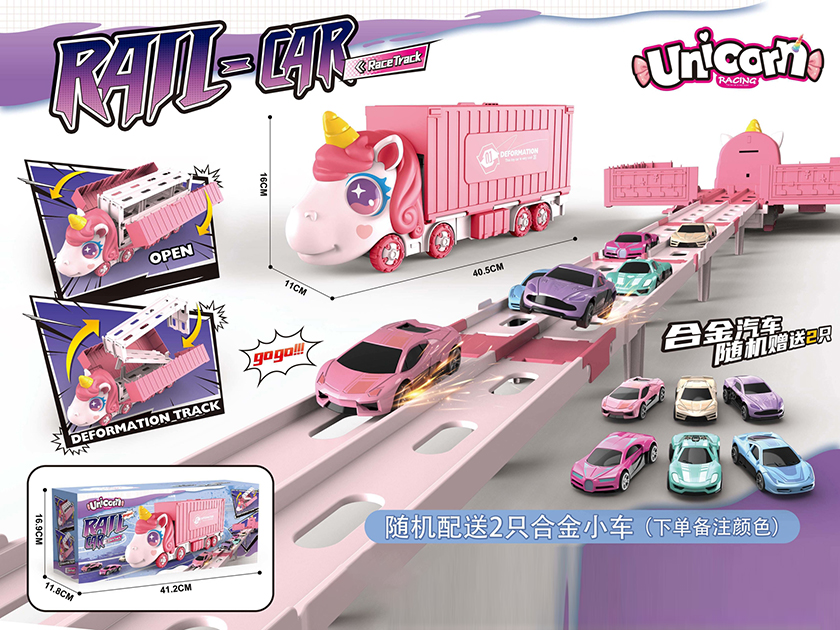 RAILWAY CAR W/2PCS DIE-CAST FREE WHEEL CAR