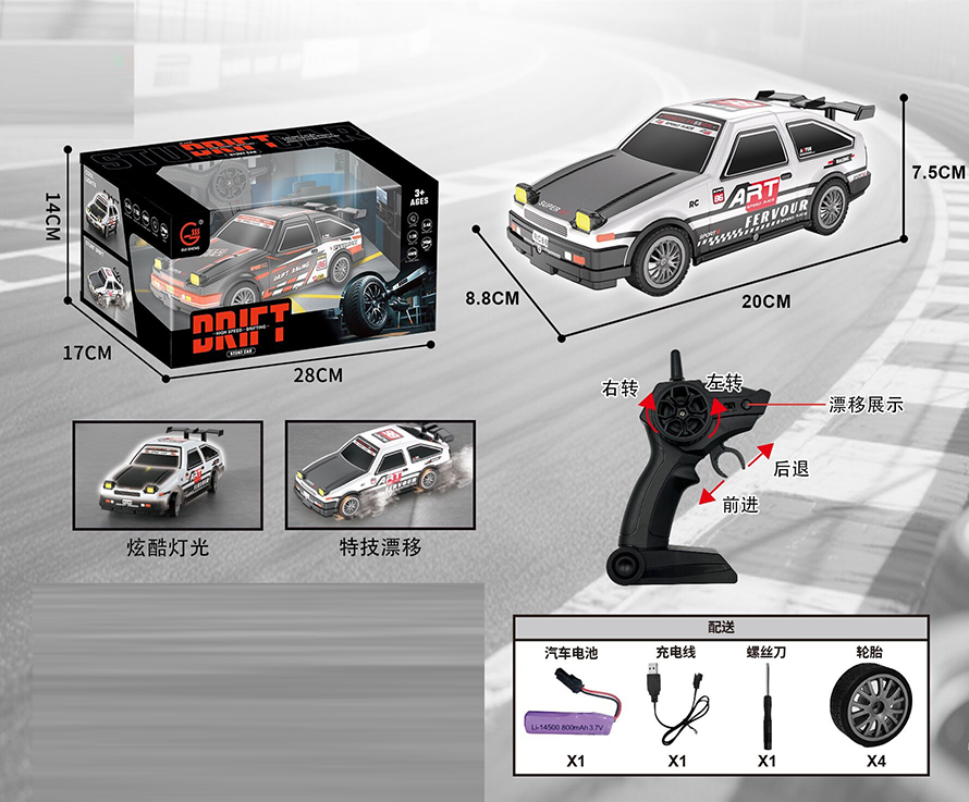 5 FUNCTION R/C CAR W/LIGHT&SPRAY W/BATTERY&USB CHARGER(3 COLOUR ASST.)