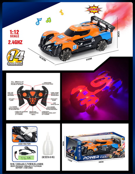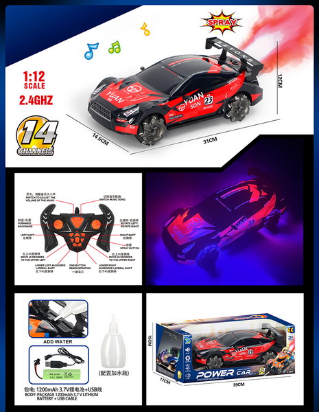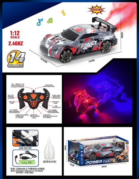 1:12 14 FUNCTION 2.4G R/C CAR W/LIGHT&MUSIC&SPRAY W/BATTERY&USB CHARGER
