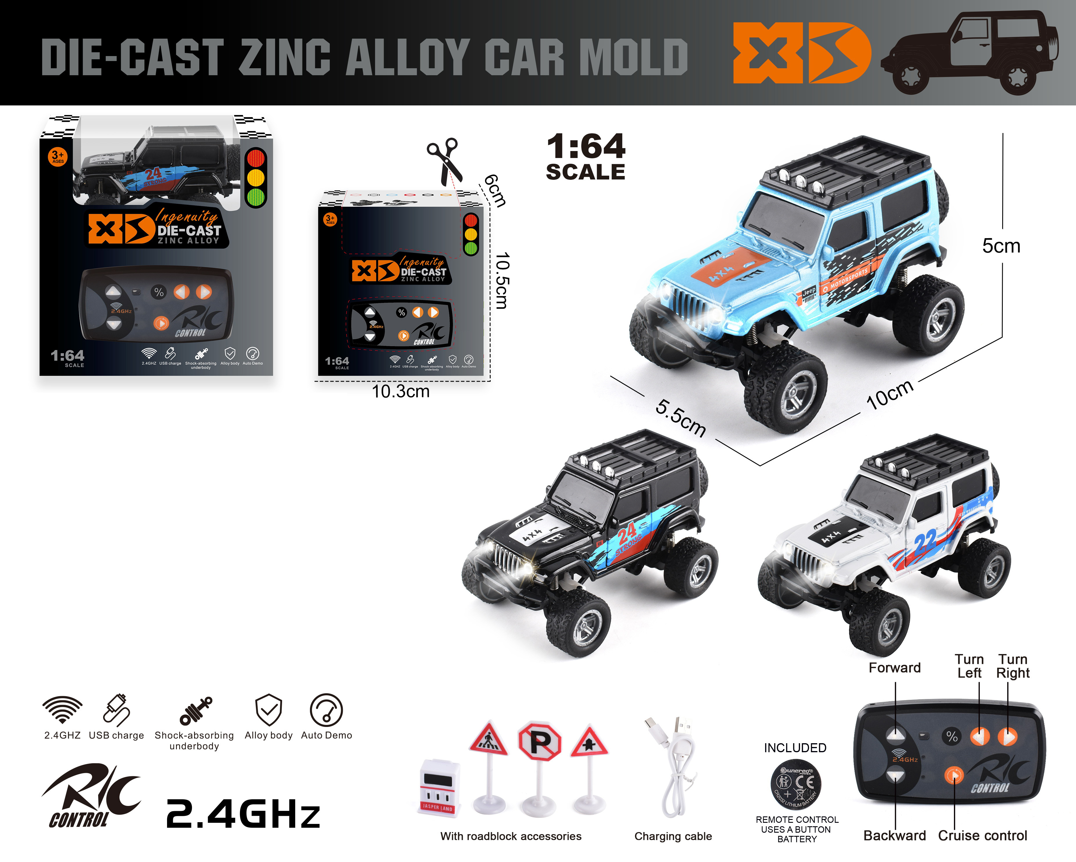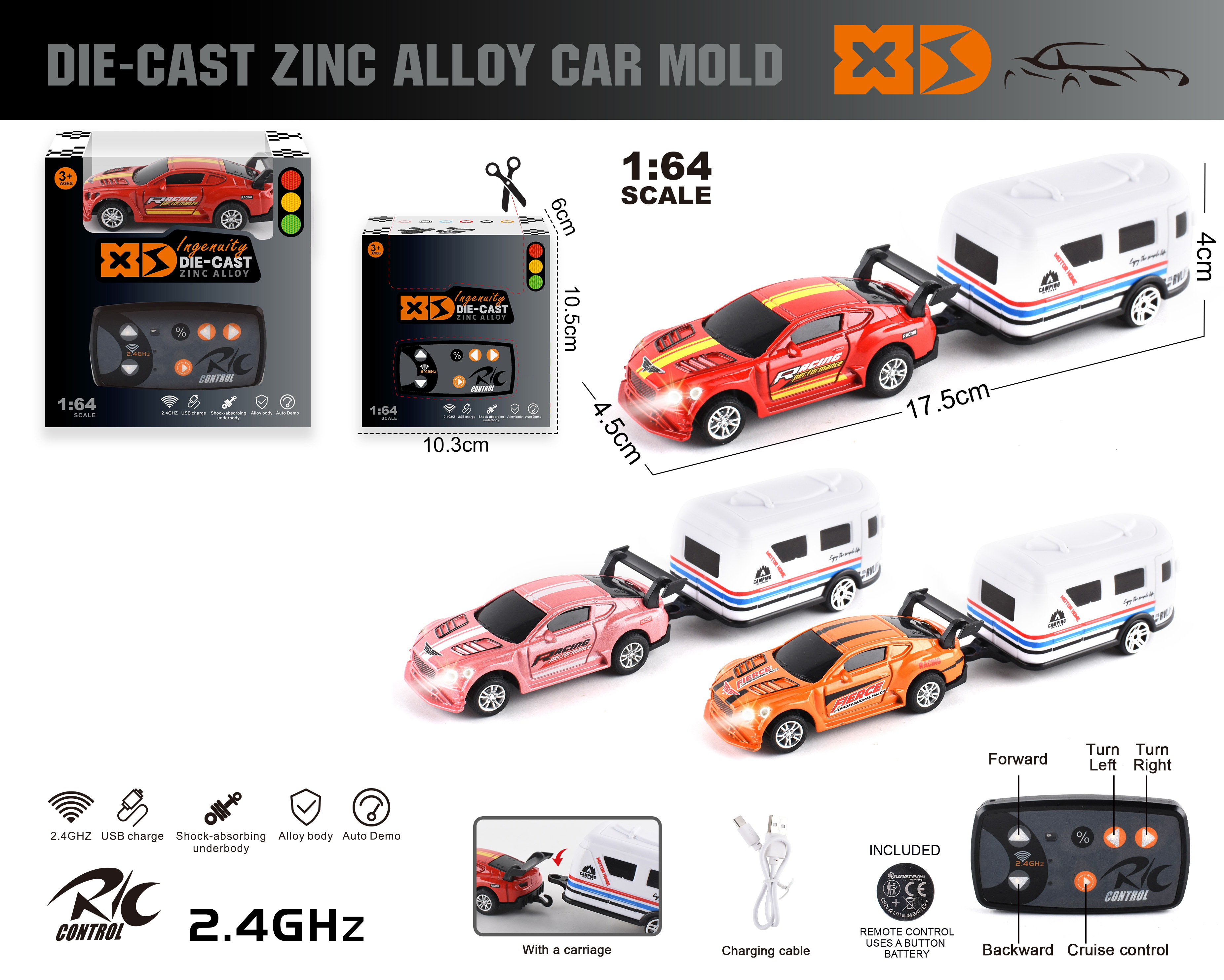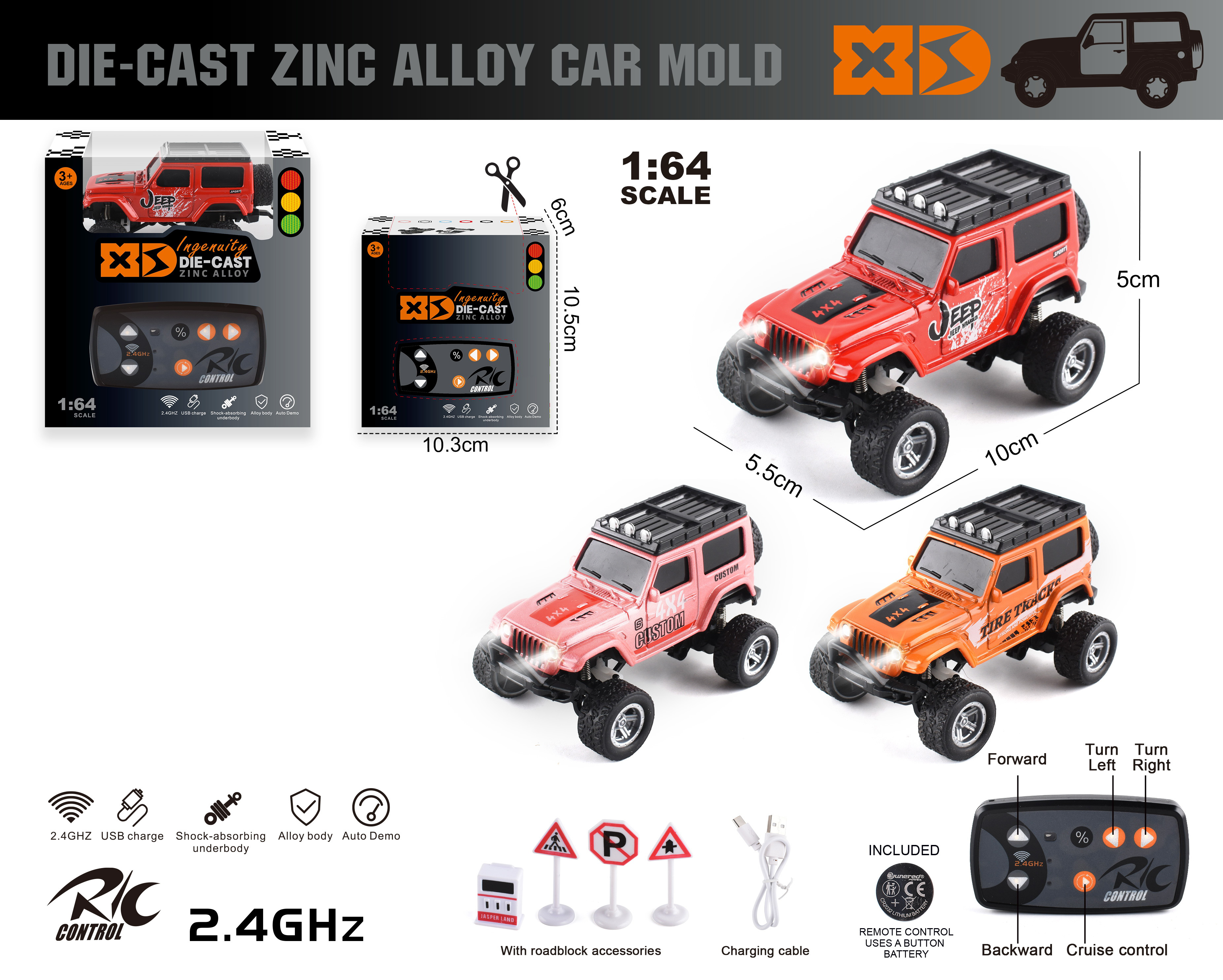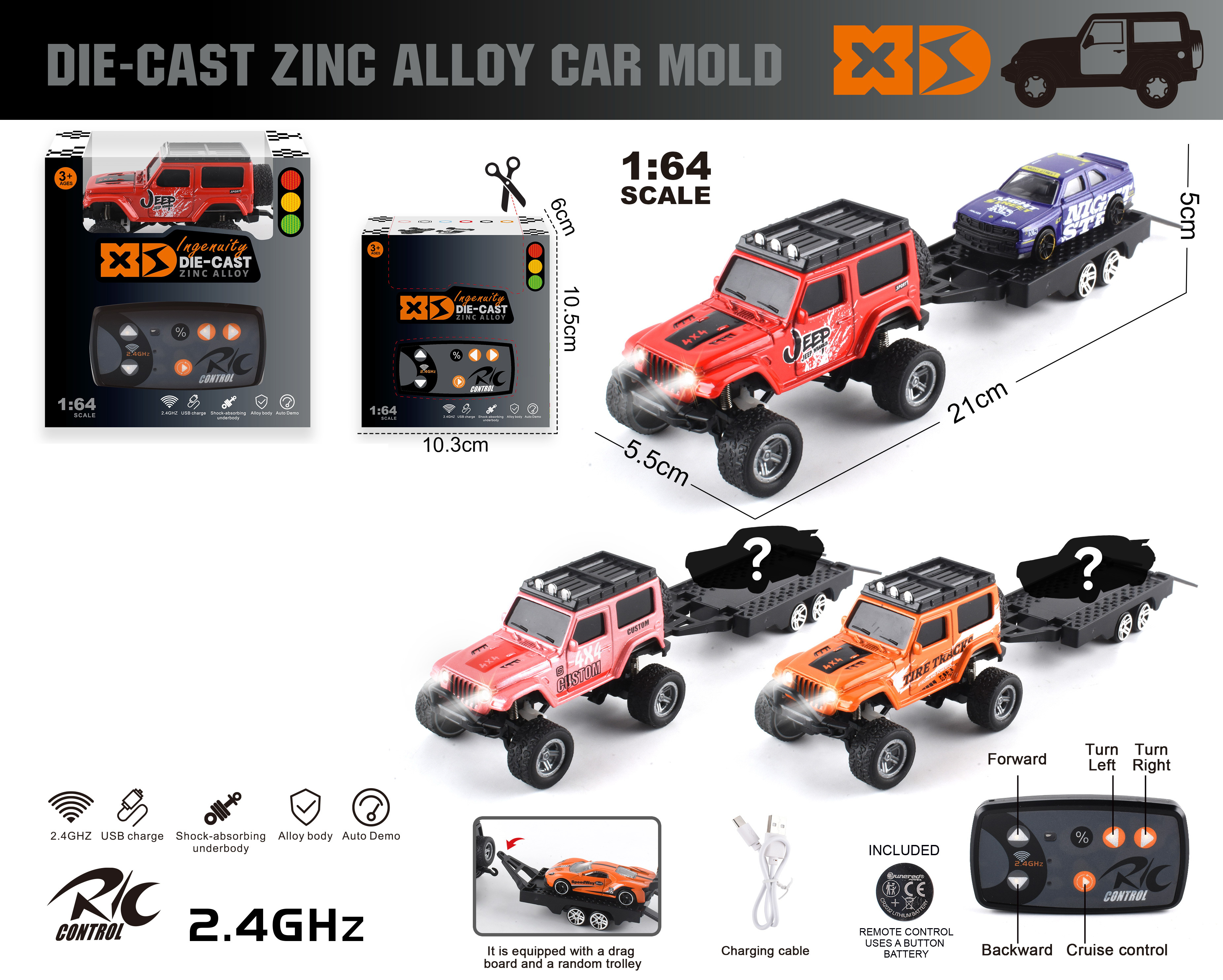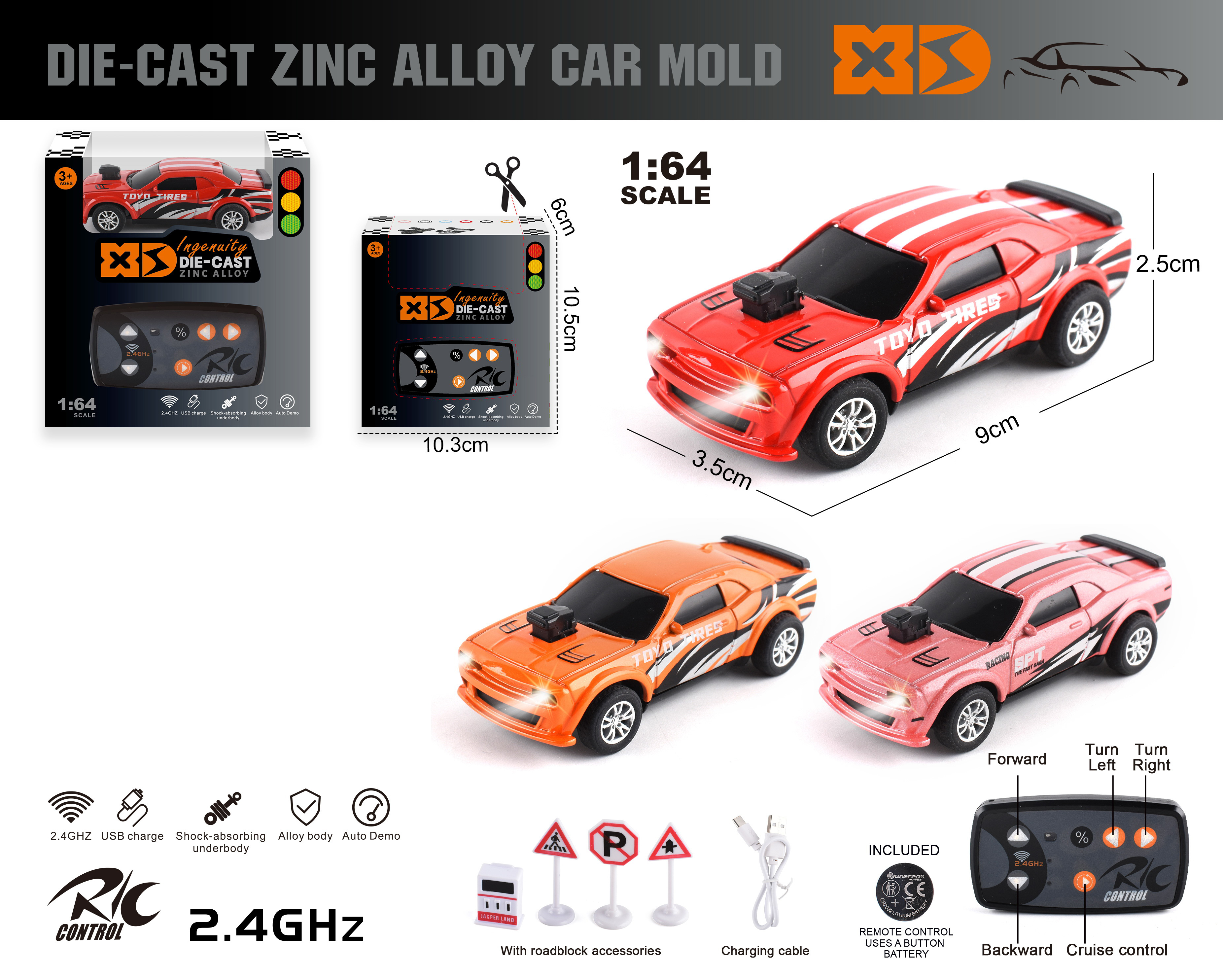 1:14 4 FUNCTION R/C CAR W/LIGHT W/O BATTERY(2 COLOR ASST,)