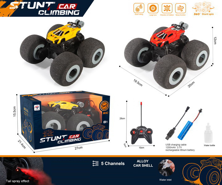 5 FUNCTION R/C DIE-CAST CAR W/LIGHT&SPRAY W/BATTERY&USB CHARGER(3 COLOUR ASST.)
