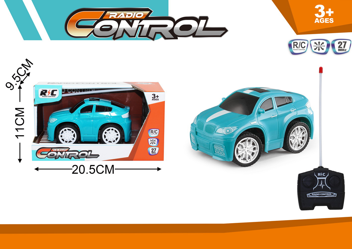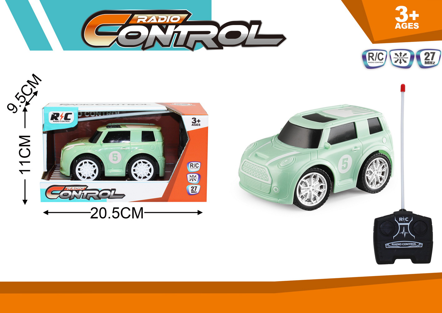 1:16 5 FUNCTION R/C CAR W/LIGHT W/BATTERY&USB CHARGER(2 COLOR ASST.)
