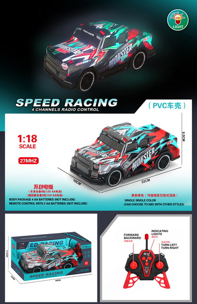 product_name: 1∶18 4 FUNCTION R/C CAR W/LIGHT W/O BATTERY(PVC COVER)