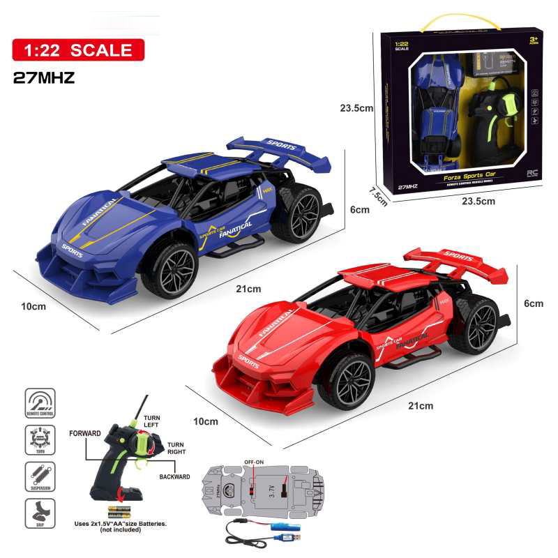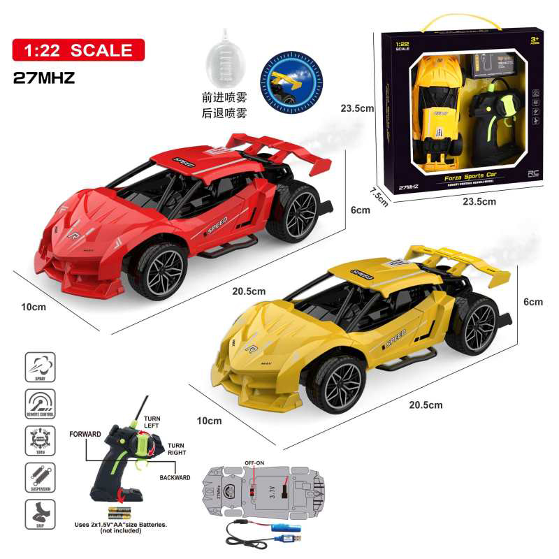 1:22 4 FUNCTION 27MHZ R/C CAR W/LIGHT&SPRAY W/BATTERY(2 COLOR ASST.)