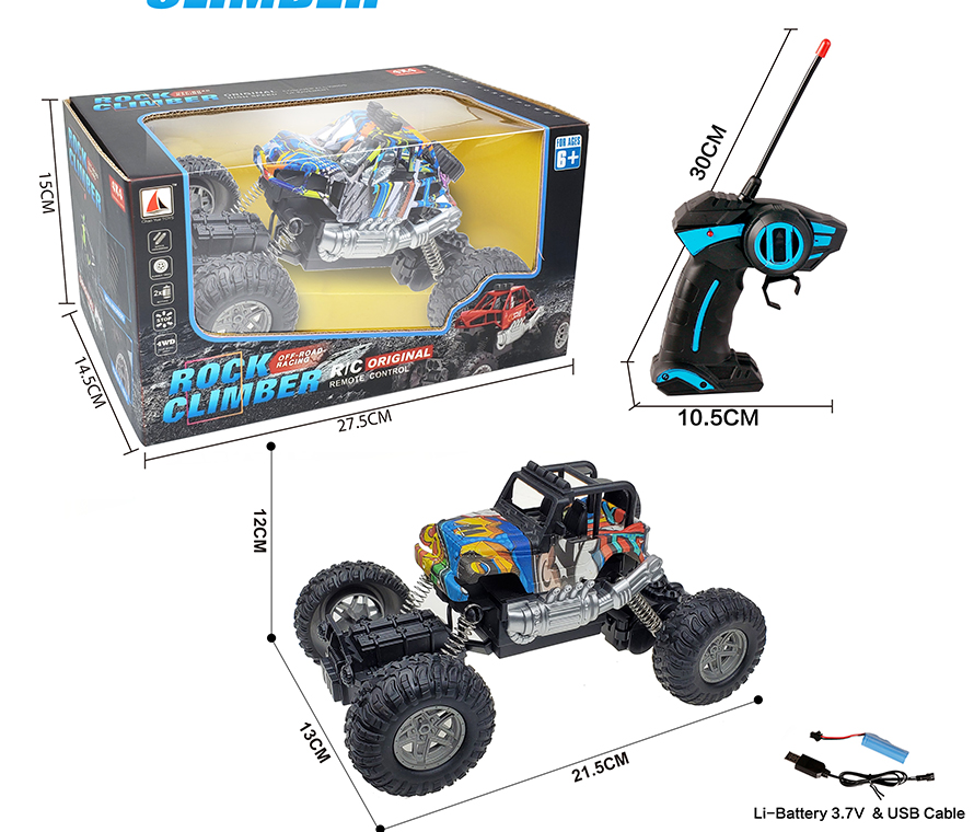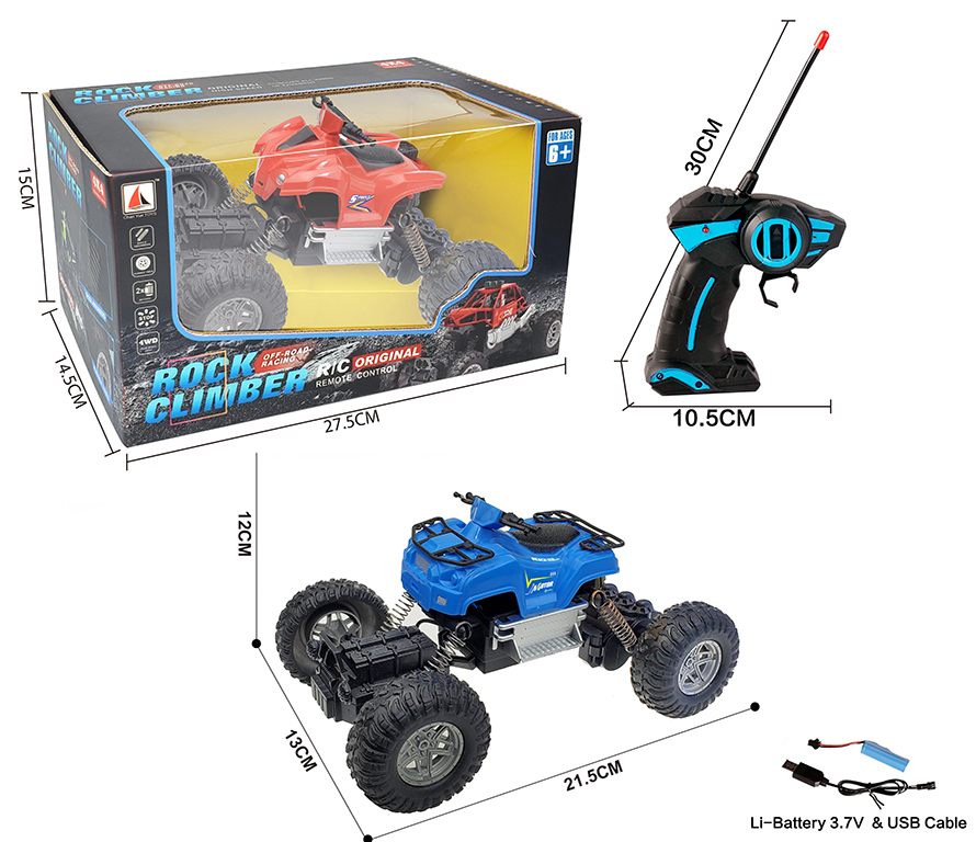 1:18 4 FUNCTION R/C CAR W/LIGHT W/BATTERY&USB CHARGER(2 COLOR ASST.)