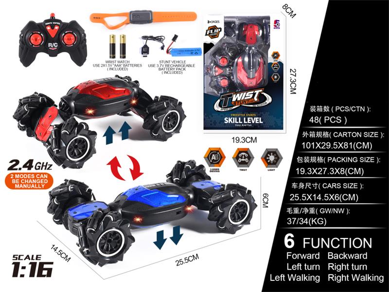 2.4G 1:16 6FUNCTION DUAL R/C STUNT CAR W/BATTERY&USB CABLE(2COLOR ASST.)