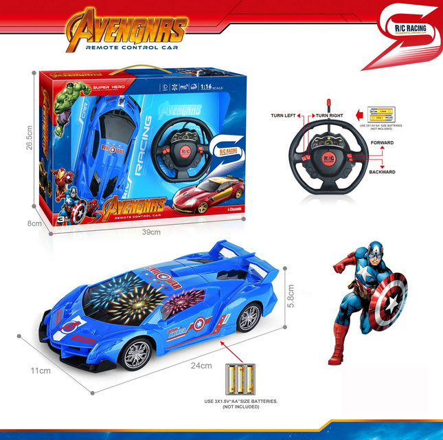 27MHZ 1:16 4 FUNCTION R/C CAR W/LIGHT W/O BATTERY(2 COLOR ASST.)