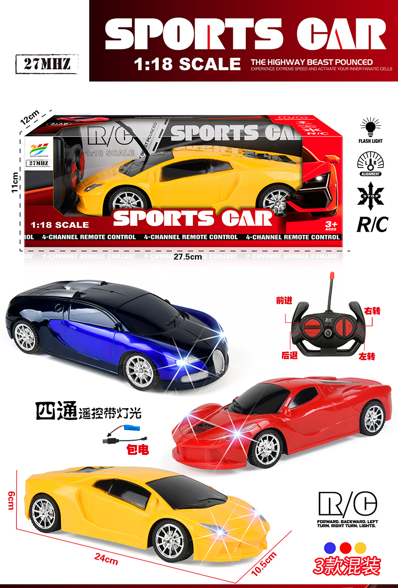 1:16 4 FUNCTION R/C CAR W/LIGHT W/ BATTERY&CHARGER(2 COLOR ASST.)