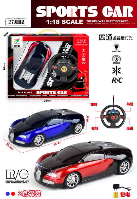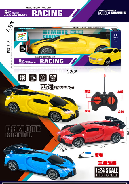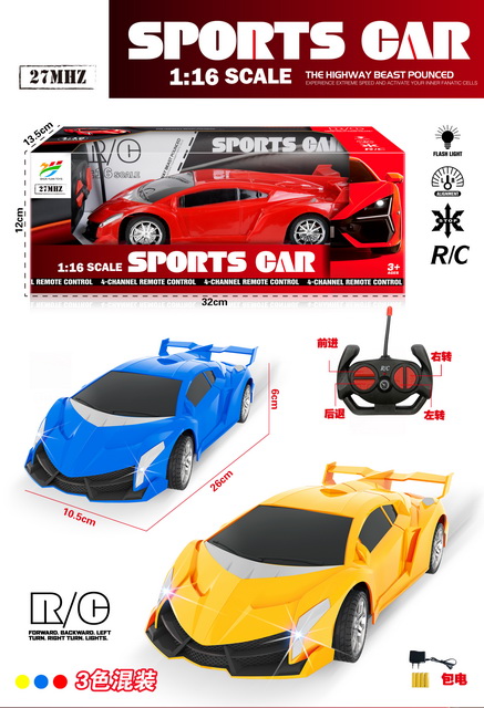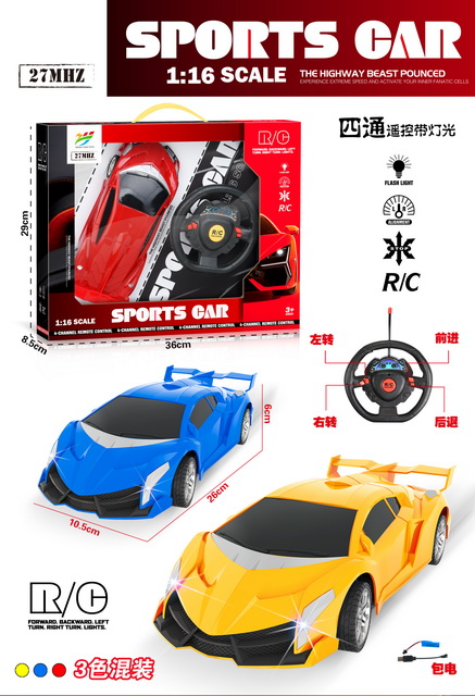 1:16 4FUNCTION R/C CAR W/LIGHT&BATTERY&USB CHARGER(3 COLOR ASST.)