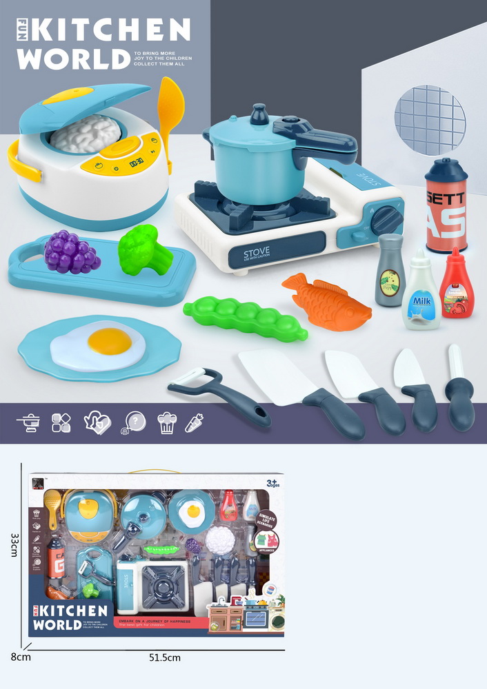 KITCHEN/FOOD SET W/LIGHT&MUSIC W/BUTTON BATTERY