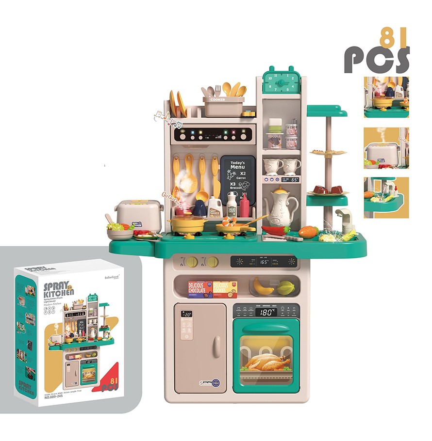 B/O KITCHEN SET W/LIGHT&MUSIC&SPRAY W/O BATTERY 81PCS