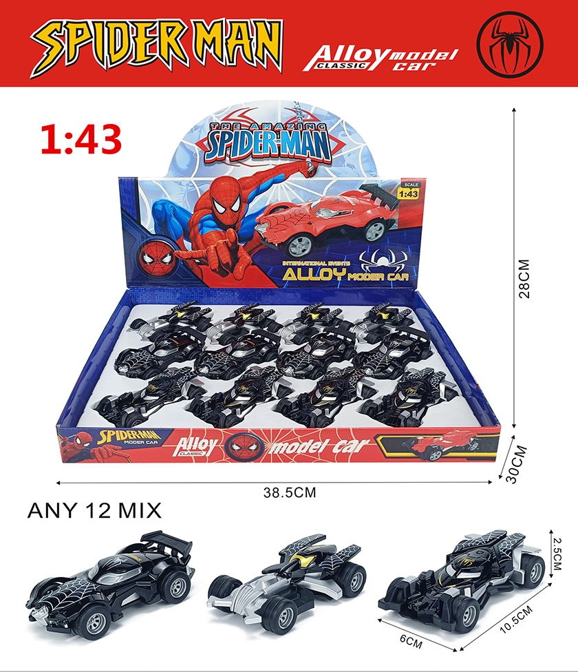 DIE-CAST PULL BACK MOTORCYCLE W/LIGHT&MUSIC W/BUTTON BATTERY 12PCS (3 COLOR ASST.)