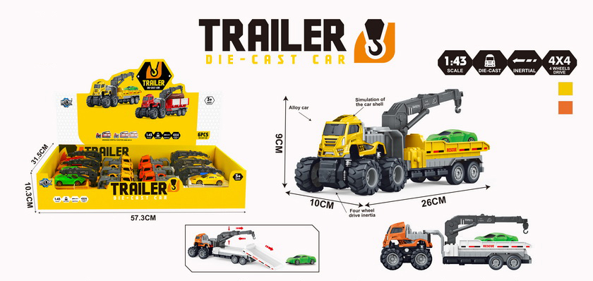 DIE-CAST FRICTION CAR SET 6PCS (2 COLOR ASST.)