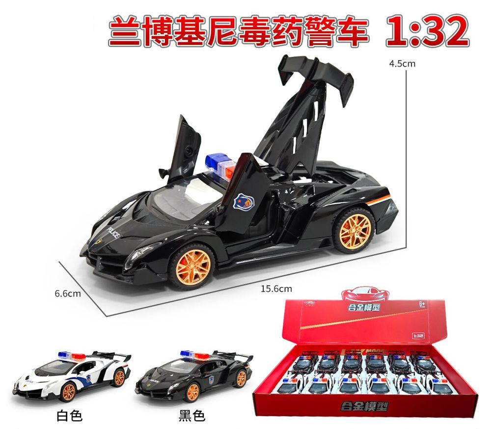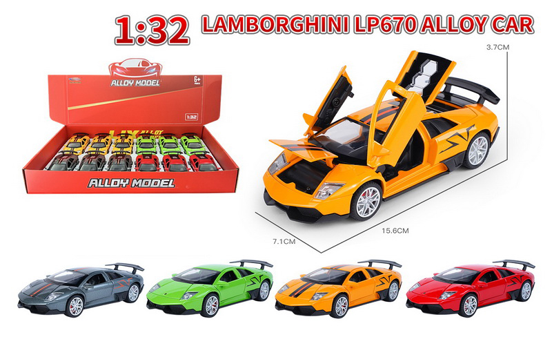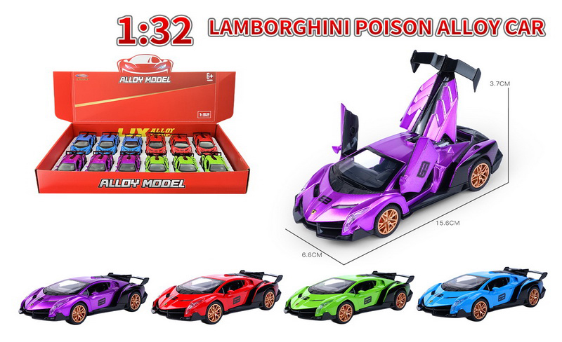 1:32 DIE-CAST PULL BACK CAR W/LIGHT&SOUND W/BUTTON BATTERY(4 COLOR ASST.)