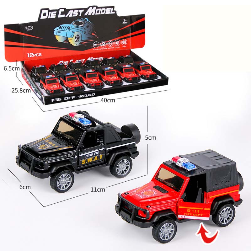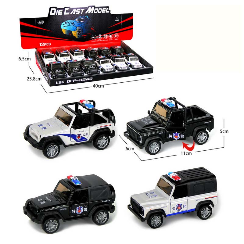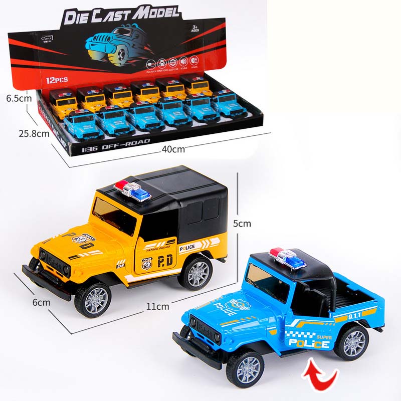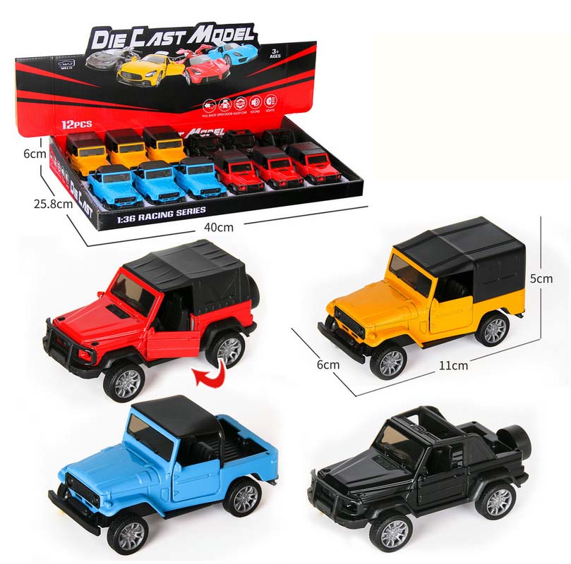 1:32 DIE-CAST PULL BACK CAR W/LIGHT&SOUND&BUTTON BATTERY 12PCS