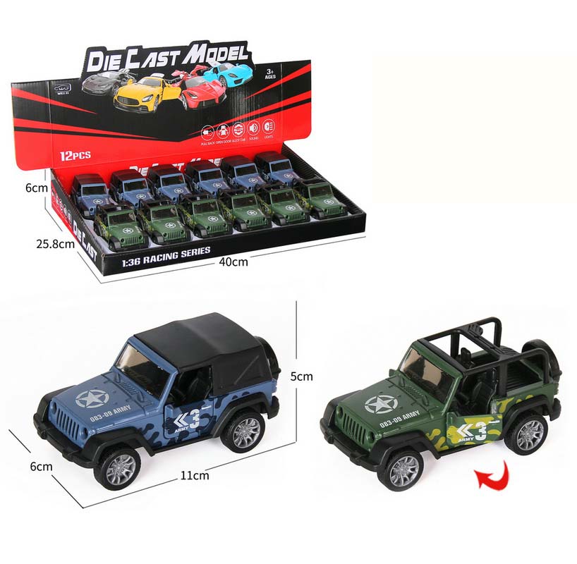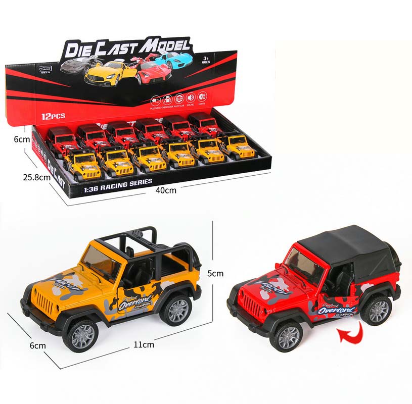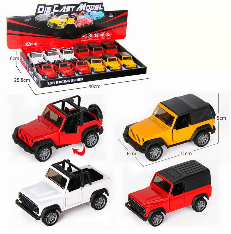 1:36 DIE-CAST PULL BACK CAR W/LIGHT&MUSIC&BUTTON BATTERY 12PCS(2 ASST.)