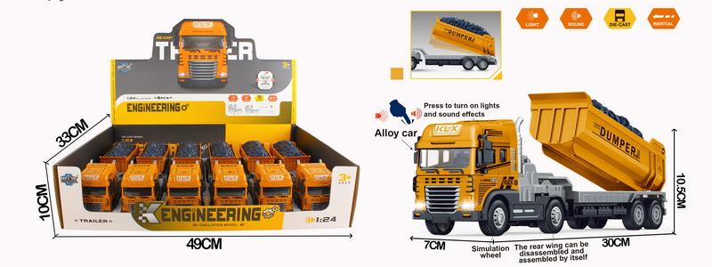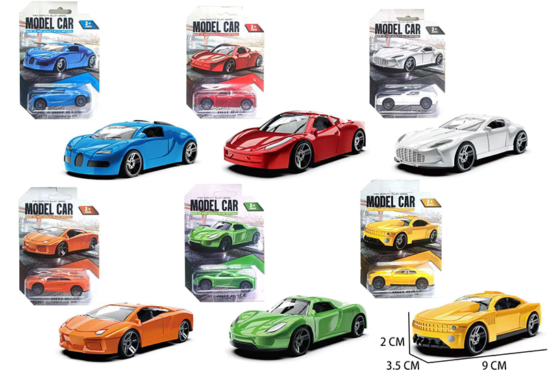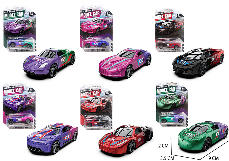 1:24 DIE-CAST FRICTION CAR SET 6PCS W/LIGHT&SOUND W/BUTTON BATTERY (2 COLOR ASST.)