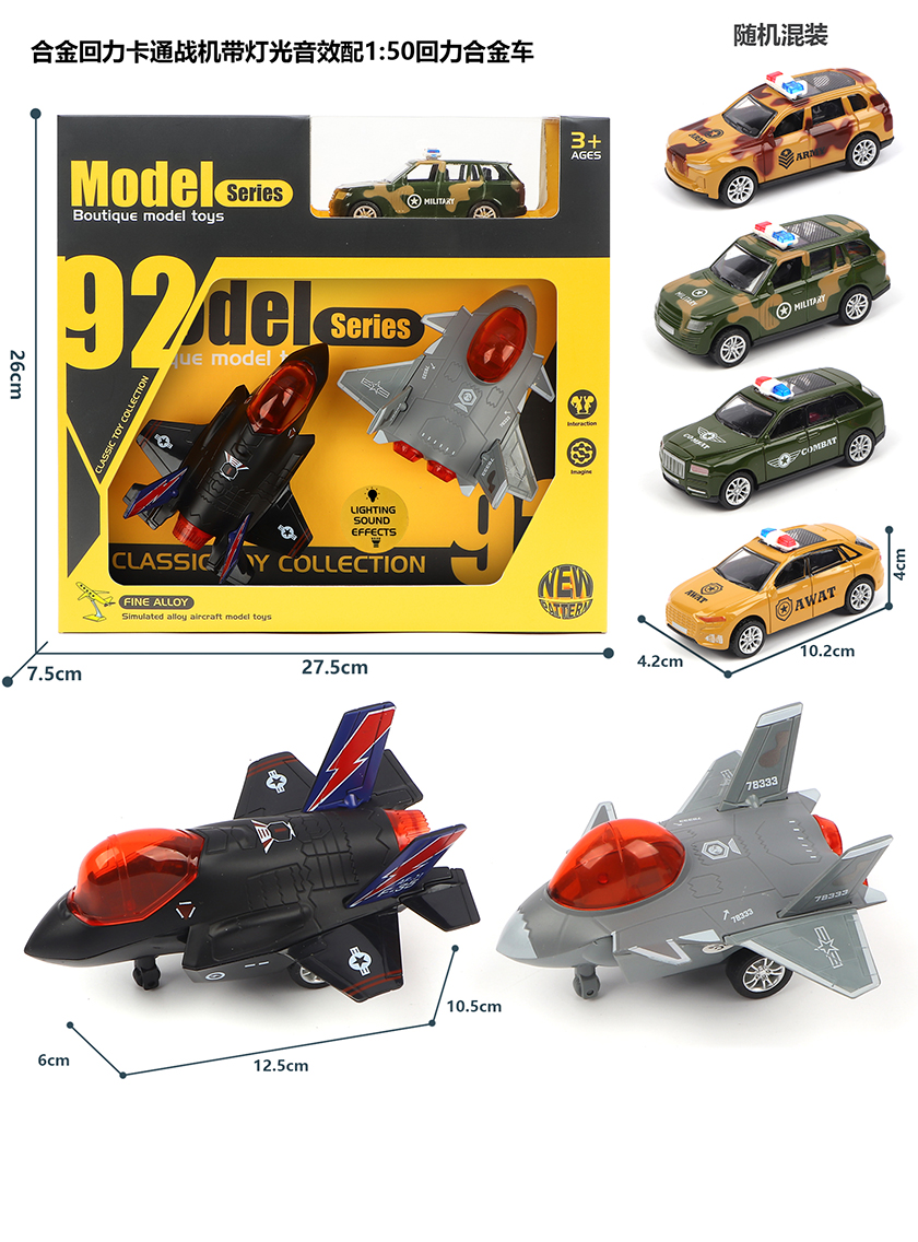 DIE-CAST PULL BACK PLANE W/LIGHT&SOUND&1:50 DIE CAST PULL BACK CAR W/BUTTON BATTERY(2 ASST.)