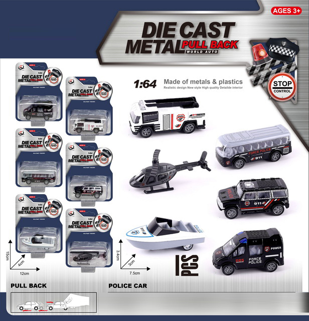 1:64 DIE-CAST PULL BACK CAR 4PCS(12 ASST.)