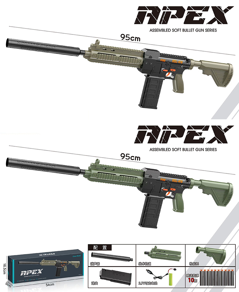 B/O SOFT DART GUN W/BATTERY&USB CHARGER(2 COLOR ASST.)