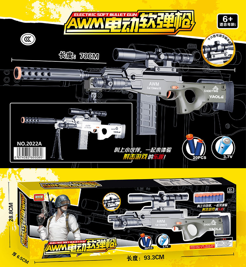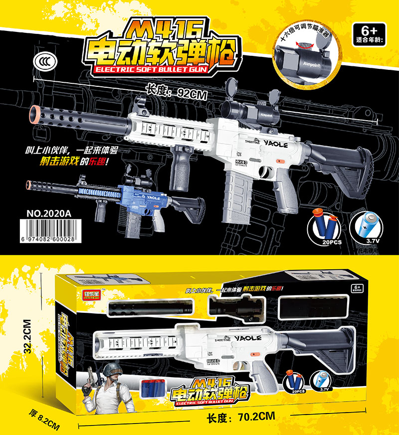 B/O SOFT DART GUN SET W/BATTERY&USB CHARGER(CHINESE PACKAGE/2 COLOR ASST.)