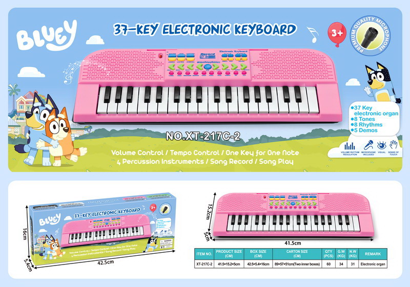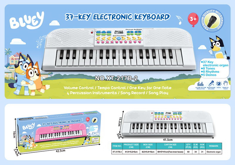 ELECTRONIC KEYBOARD W/SOUND&MICROPHONE W/O BATTERY(BLUEY)