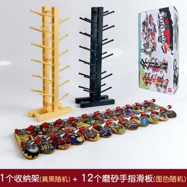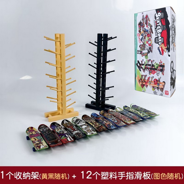 DIE-CAST FINGER TOYS 12PCS W/1PCS SKATEBOARD RACK(2 COLOR ASST.)