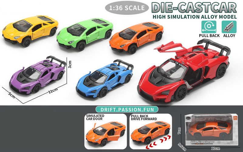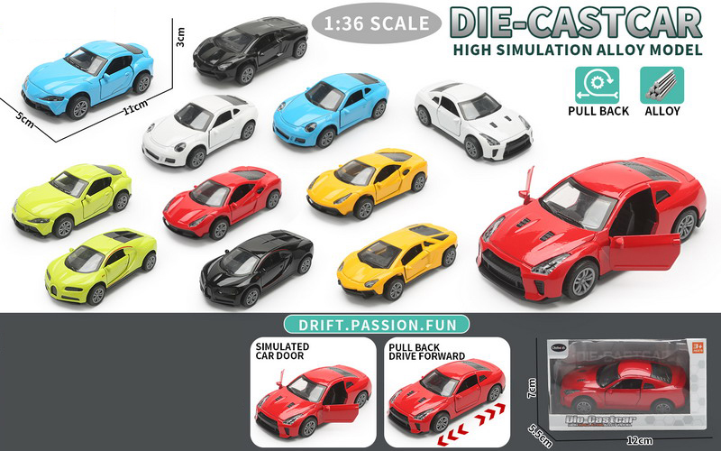 1:36 DIE-CAST PULL BACK CAR (2 ASST.)12PCS