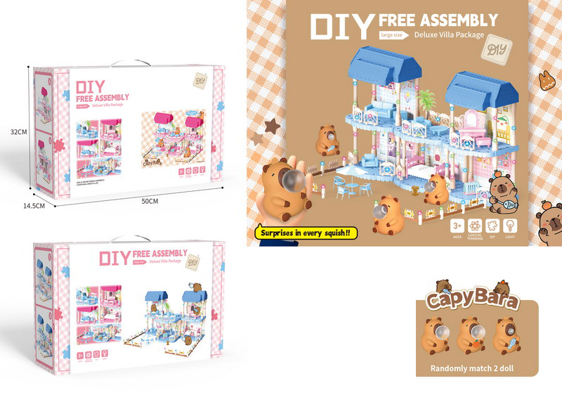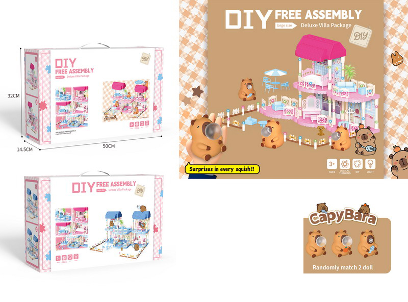 VILLA SET W/LIGHT W/BUTTON BATTERY W/2PCS CAPYBARA