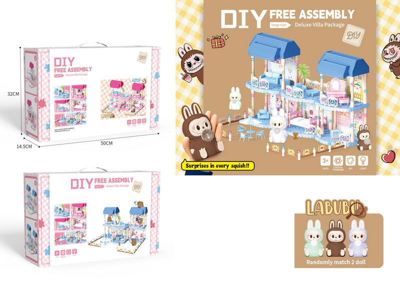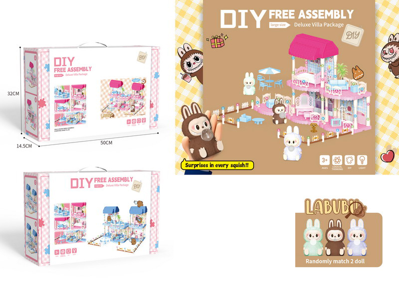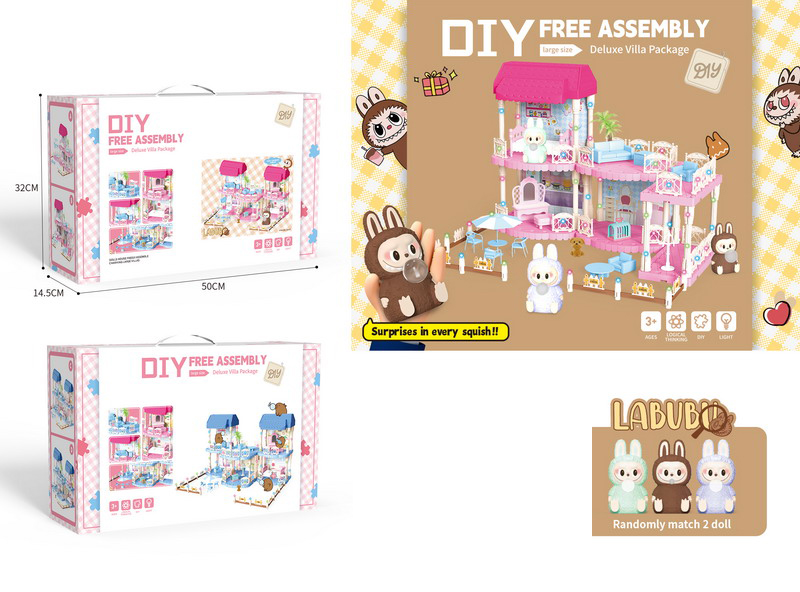 VILLA SET W/LIGHT W/BUTTON BATTERY W/2PCS LABUBU
