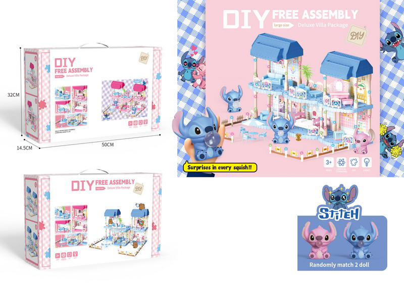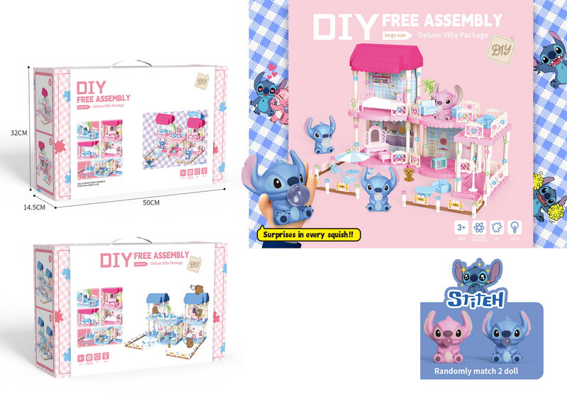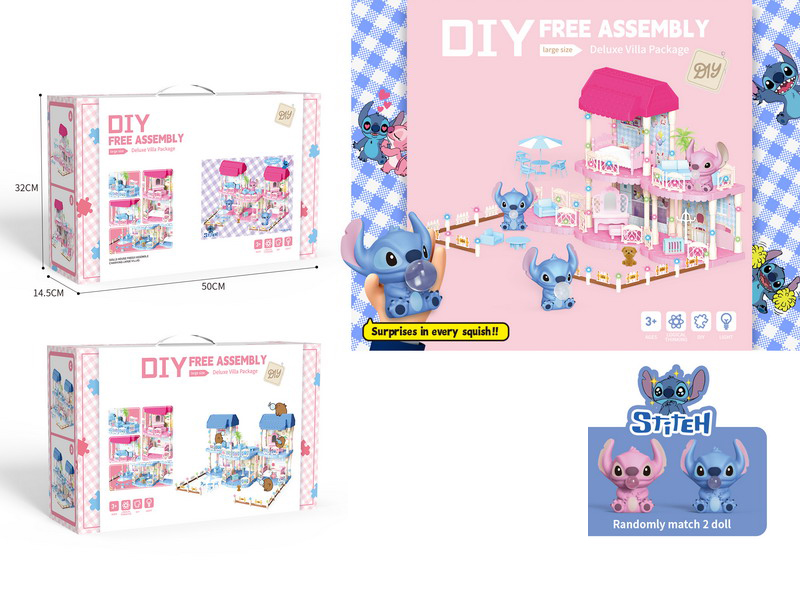 VILLA SET W/LIGHT W/BUTTON BATTERY W/2PCS STITCH