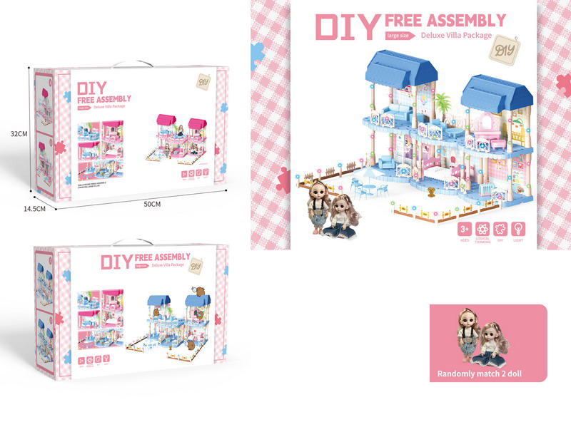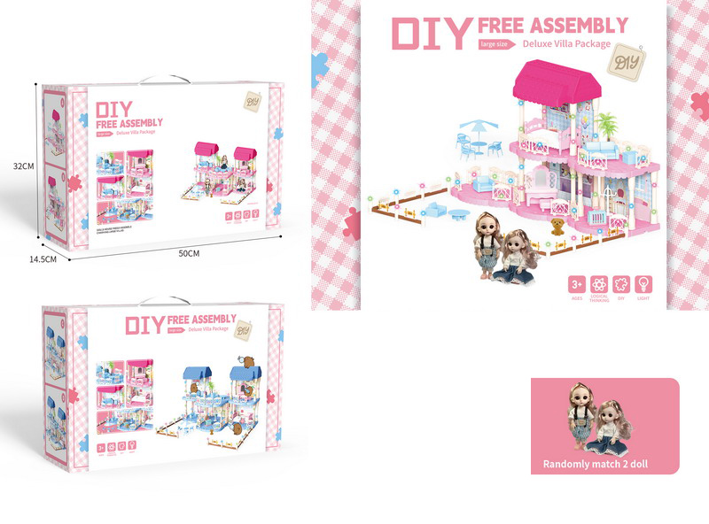VILLA SET(W/LIGHT W/BUTTON BATTERY W/6"DOLL)