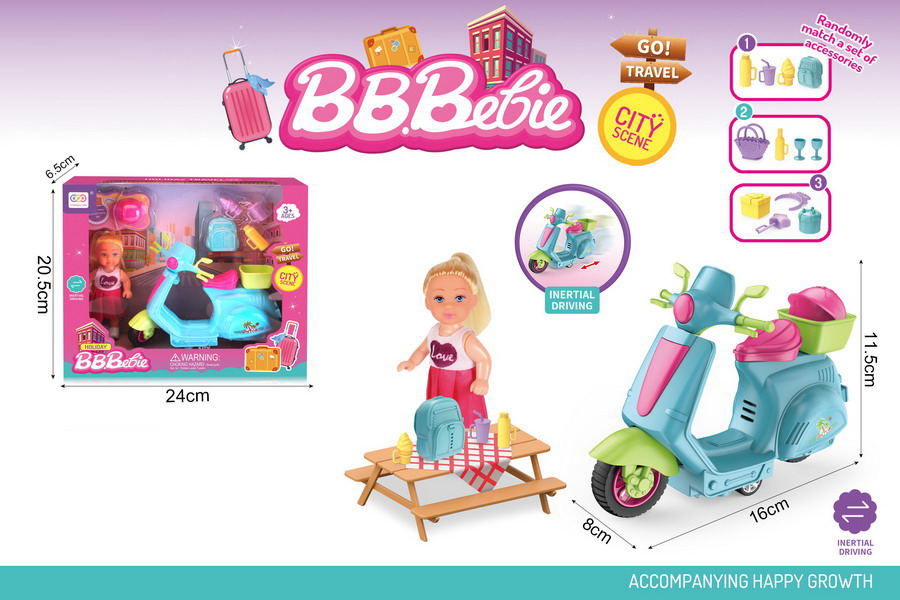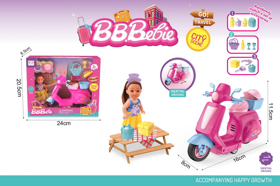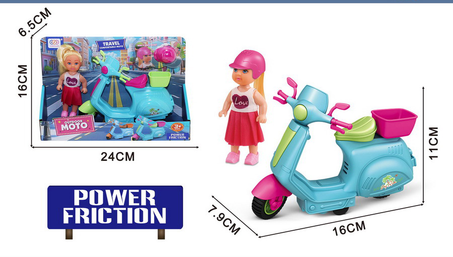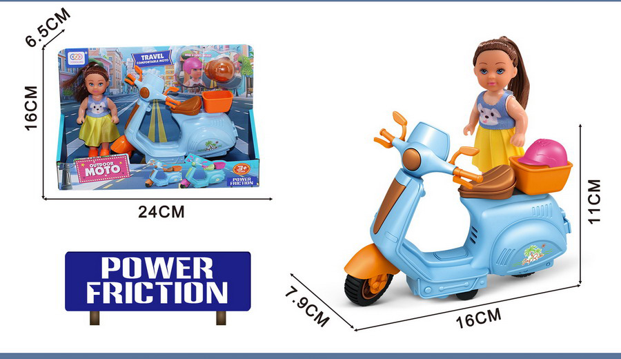 FRICTION MOTORCYCLE W/4.5"SOLID BODY BARBIE DOLL