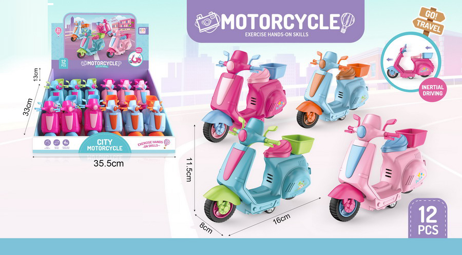 FRICTION MOTORCYCLE W/LIGHT&SOUND W/BUTTON BATTERY 8PCS(3 COLOUR ASST.)