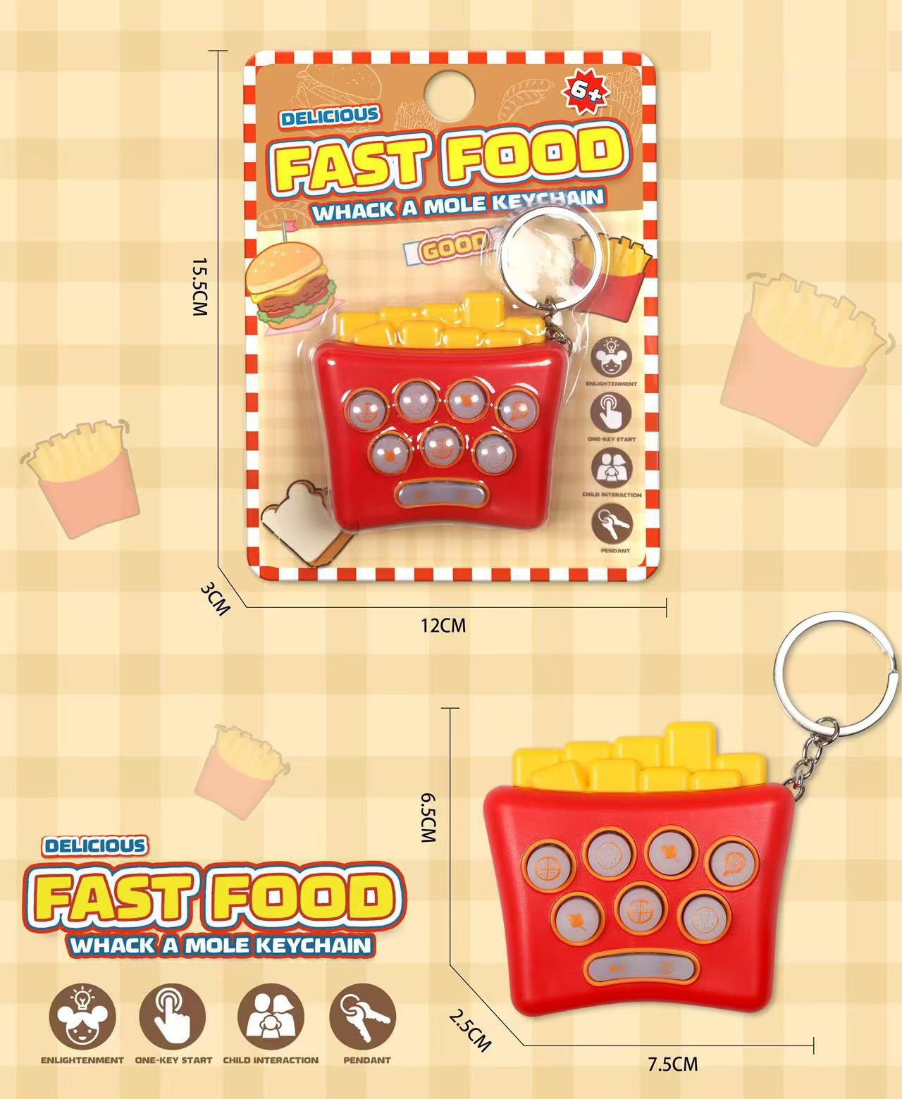 FRENCH FRY WHACK A MOLE KEYCHAIN W/LIGHT&MUSIC&BUTTON BATTERY
